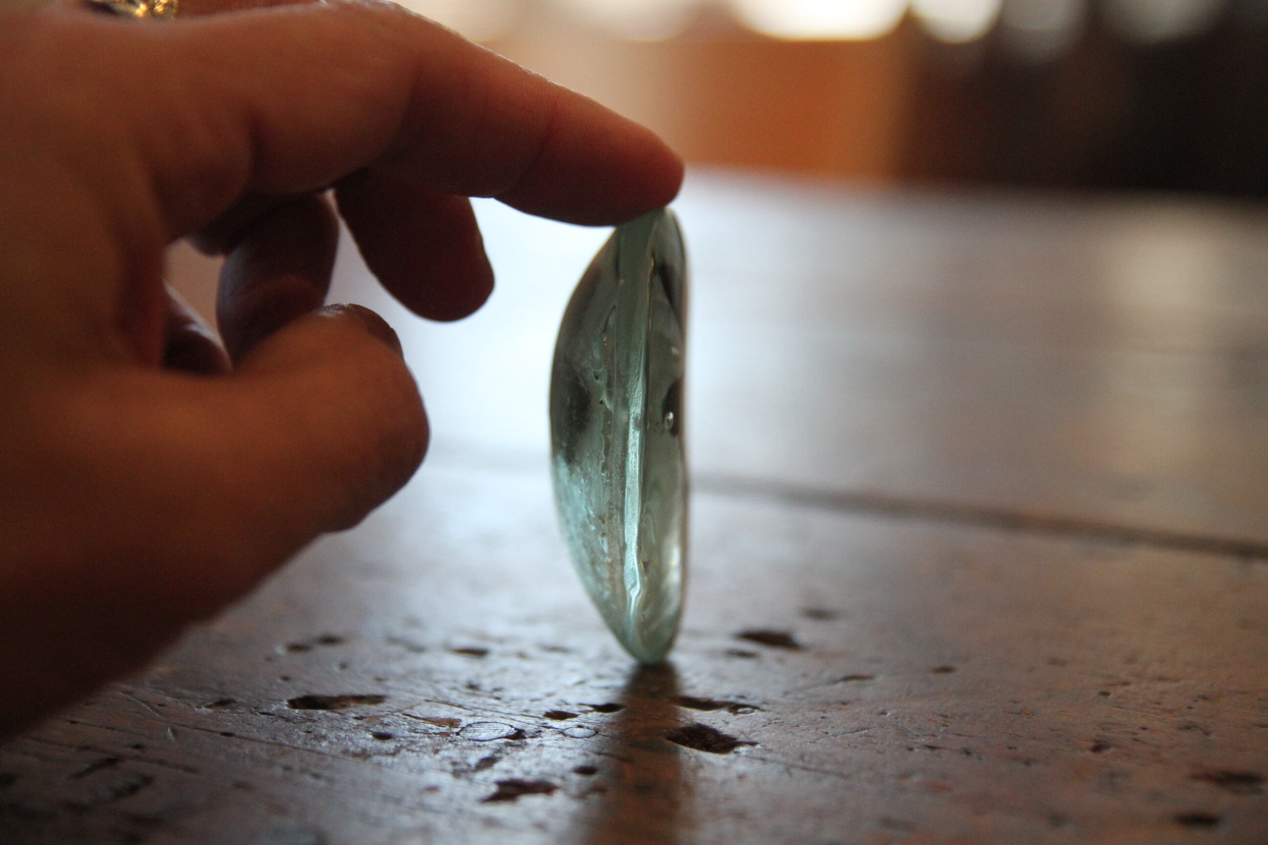 こちらはガラスの石「オキザリス」。ぼんやり眺めていると不思議に気持ちが落ち着く、他にない作品です。