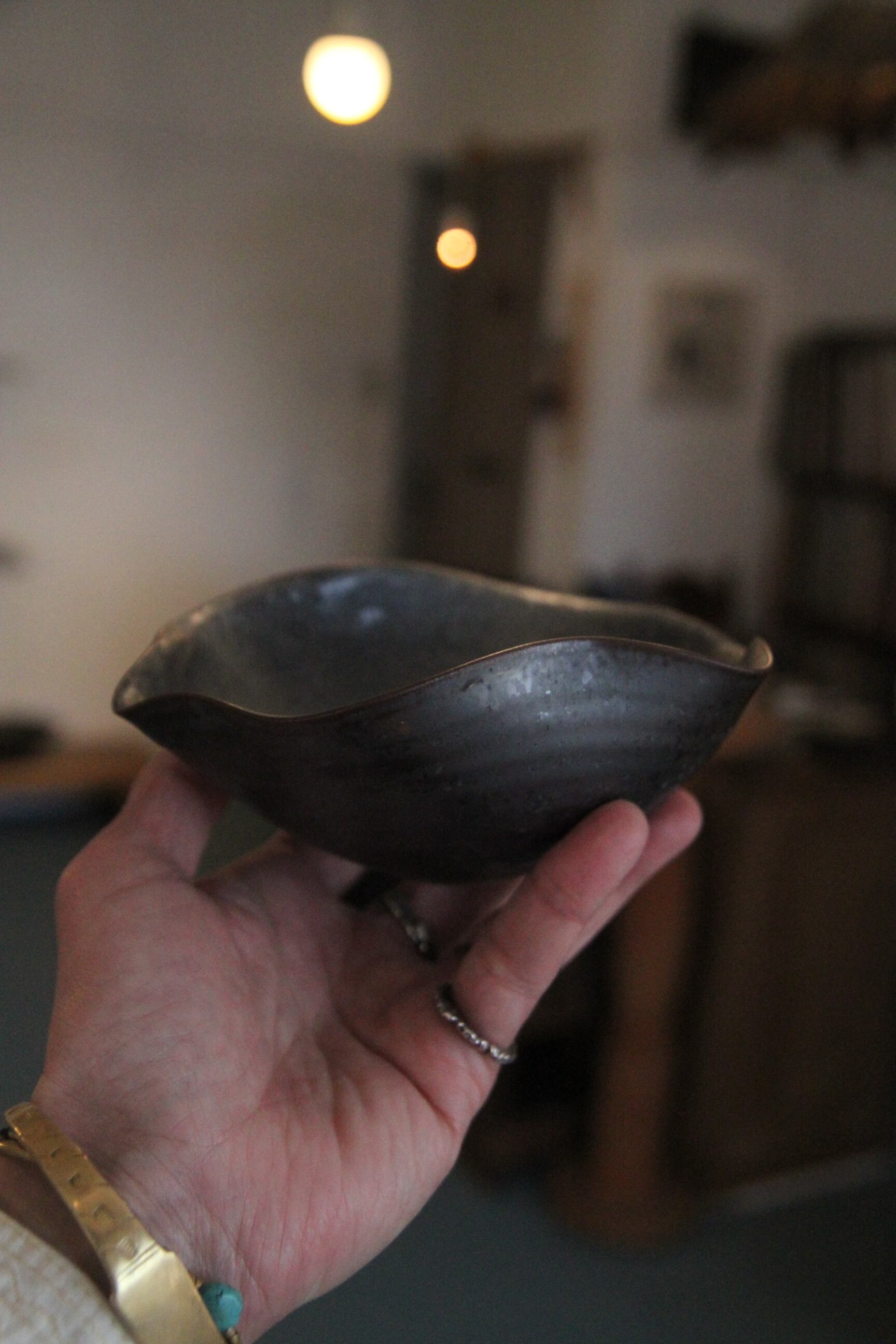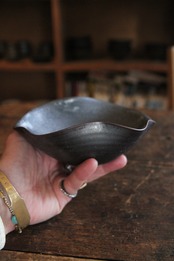 熊本は天草の陶芸家、金澤宏紀氏の器です。こちらは湾曲が美しい小鉢。くねった縁に持ち手がピタリ、とても美しく使いやすい一品です。