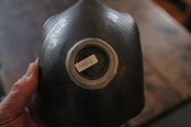 天草の陶石を用いた磁器作品、ロクロで描かれる滑らかで美しい曲線、口当たりや手触りの良いその風合い。なかでも黒は鉄分を多く含んだ釉薬、赤はそこに漆、金はそこに真鍮を上絵して焼いています。裏面も銀で装飾してあるこだわり。