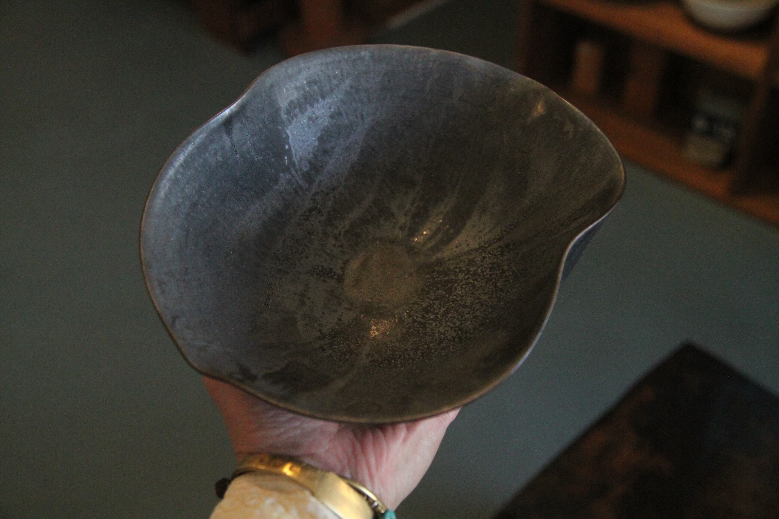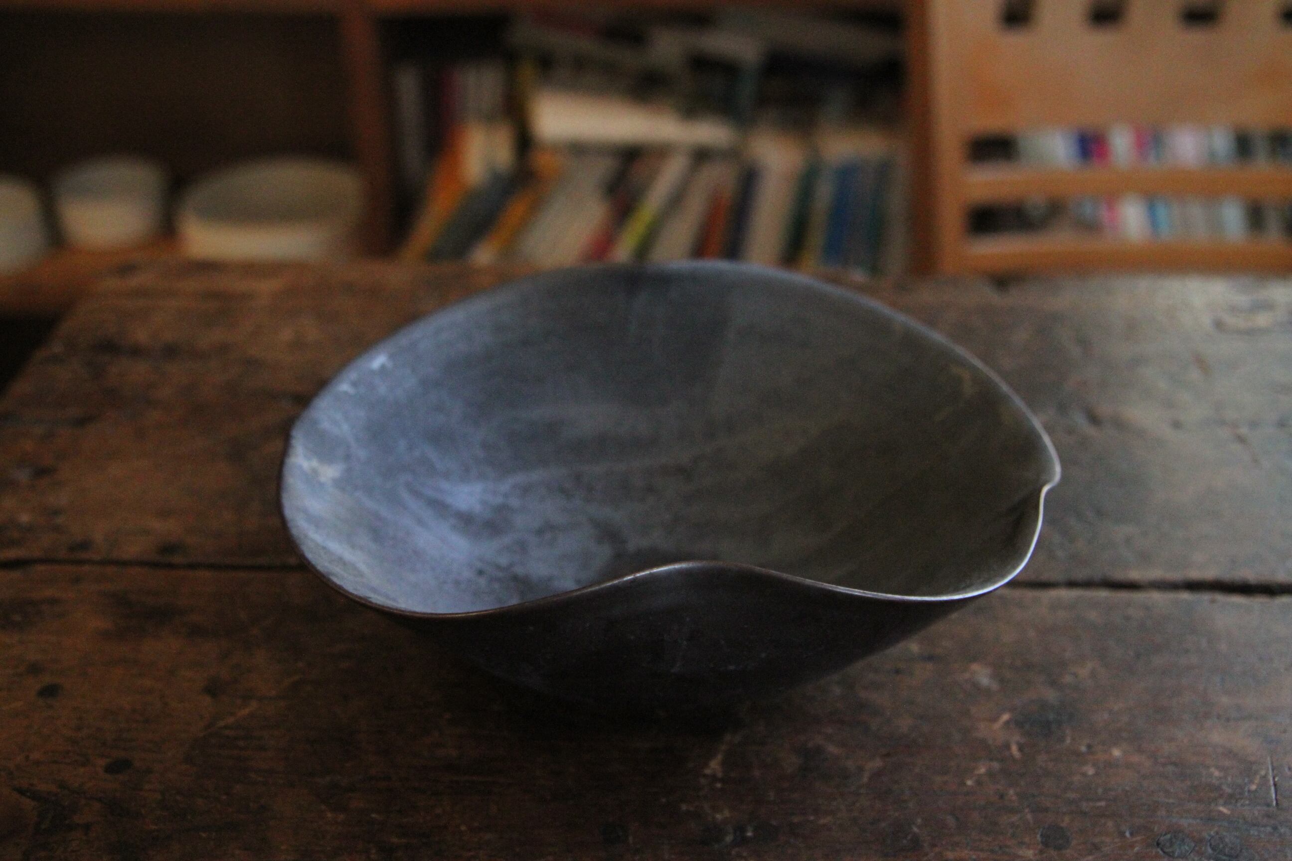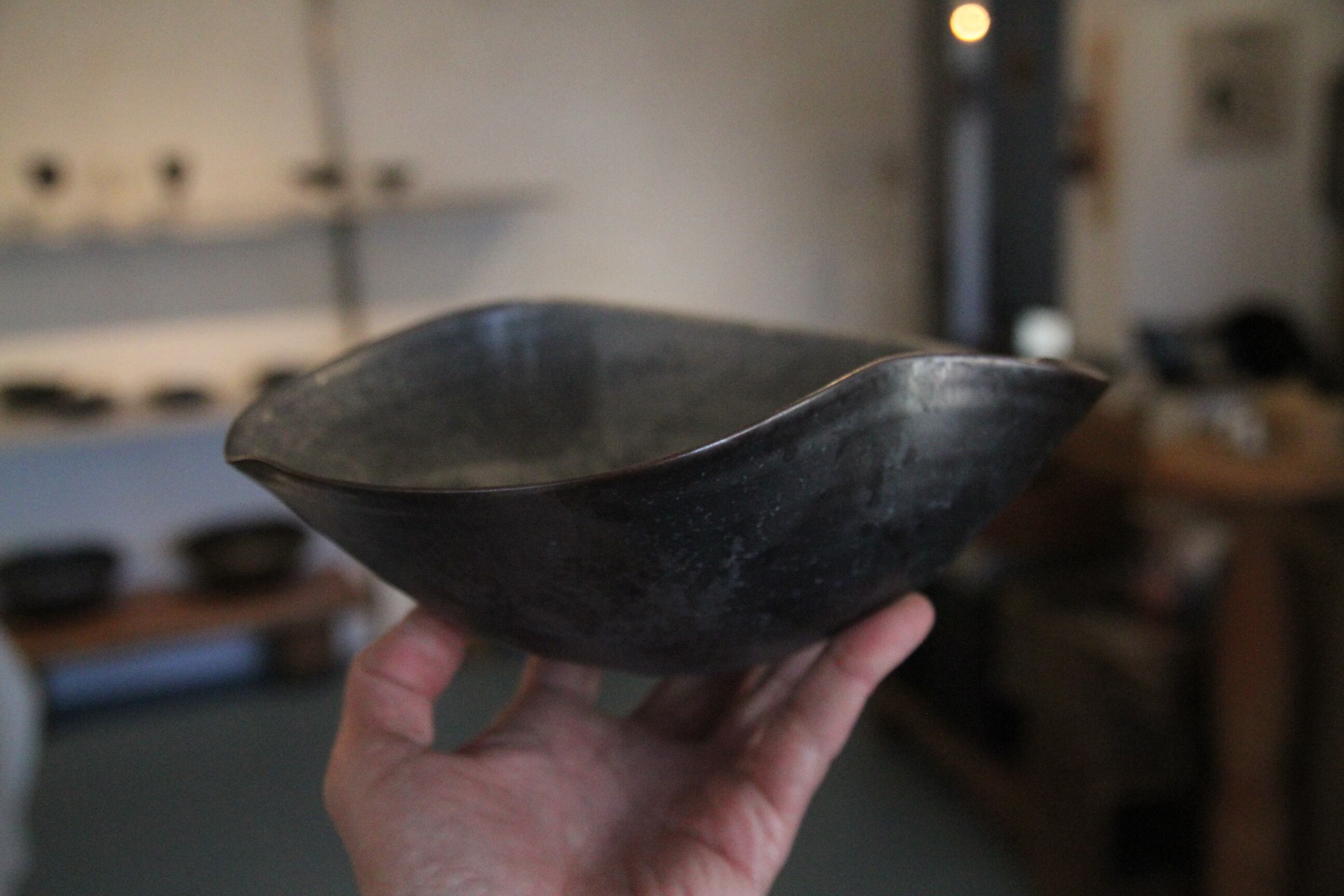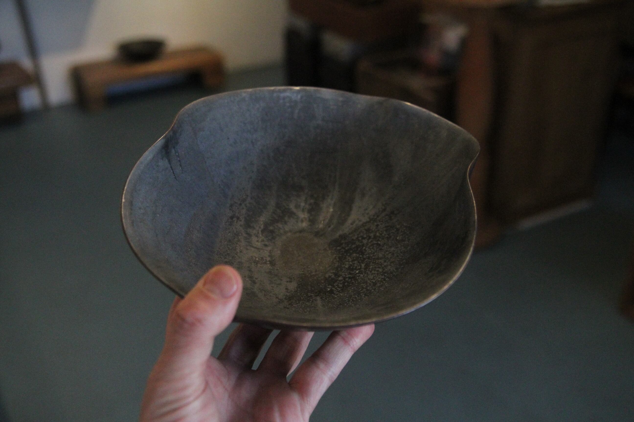 熊本は天草の陶芸家、金澤宏紀氏の器です。こちらは湾曲が美しい鉢。くねった縁に持ち手がピタリ、とても美しく使いやすい一品です。