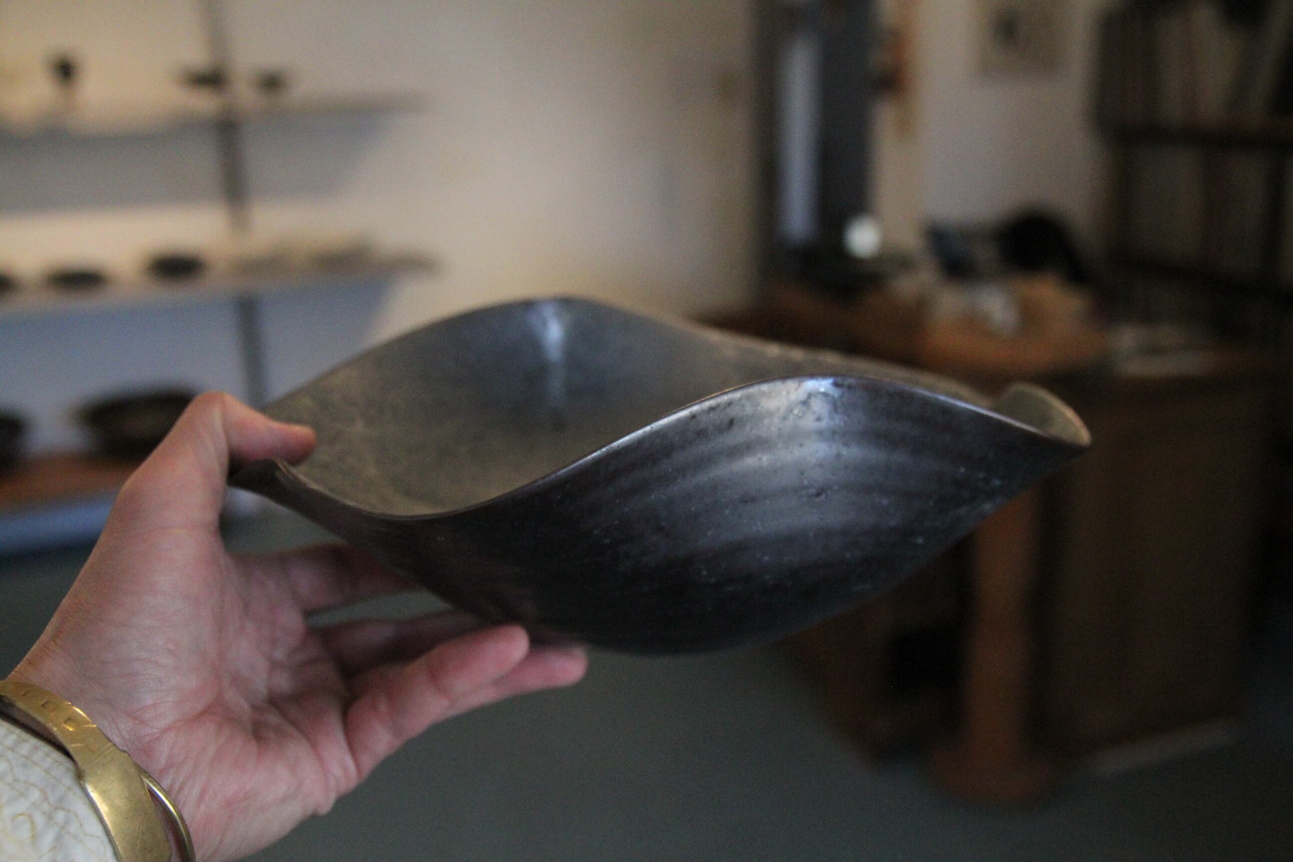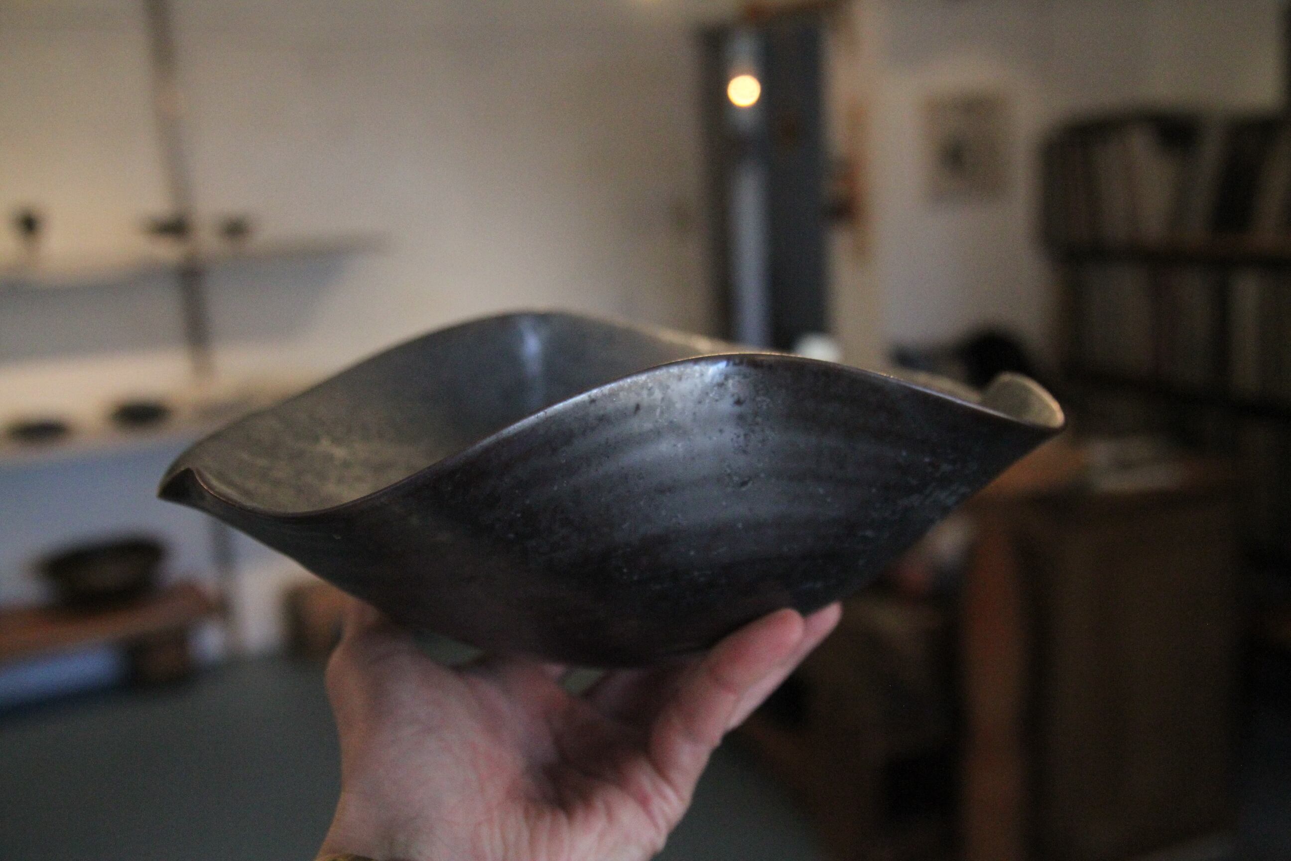 熊本は天草の陶芸家、金澤宏紀氏の器です。こちらは湾曲が美しい鉢。くねった縁に持ち手がピタリ、とても美しく使いやすい一品です。