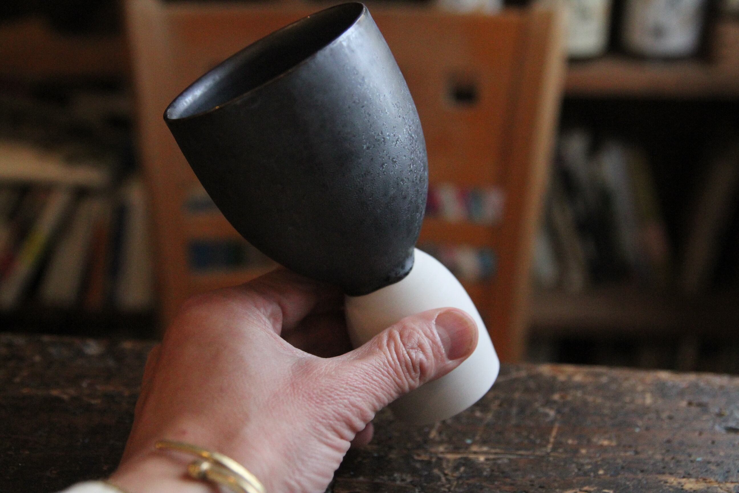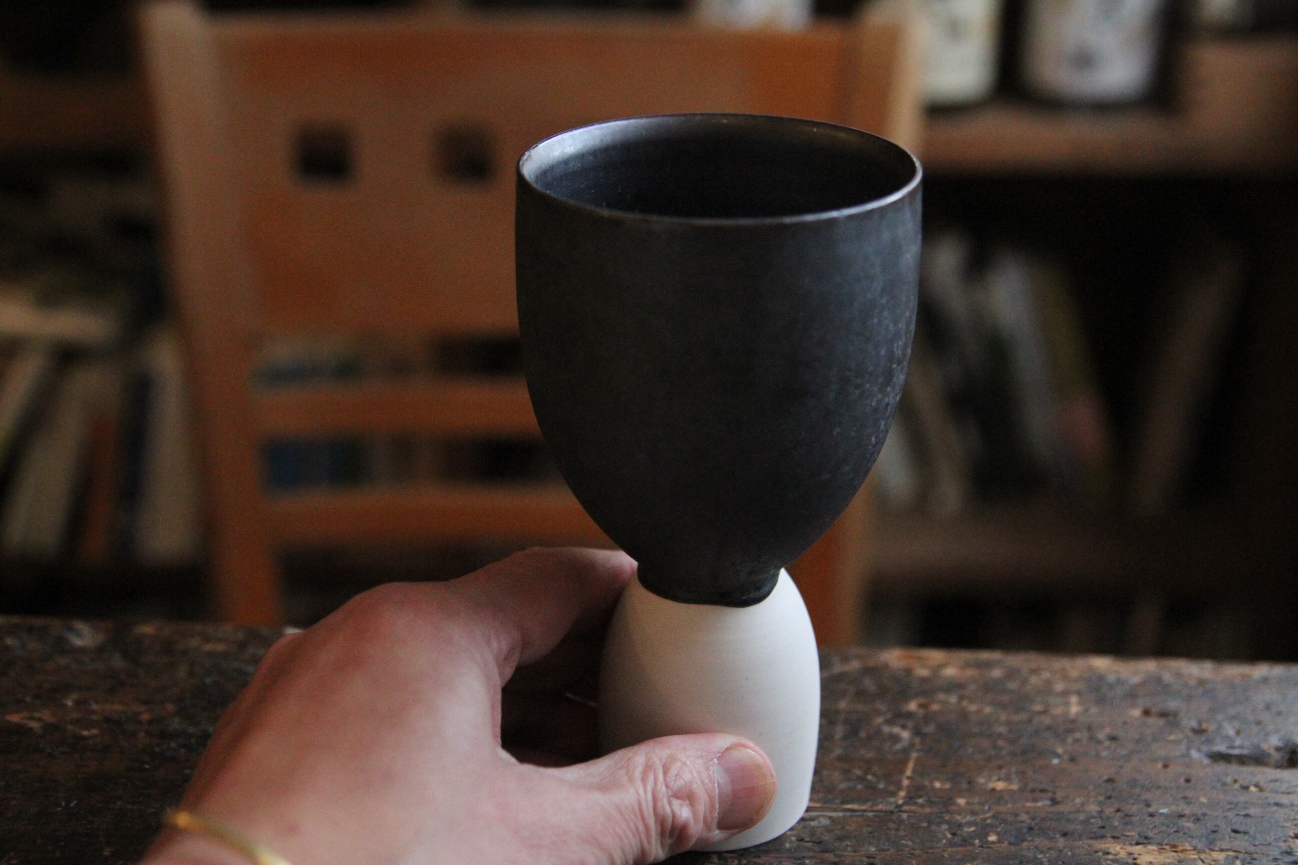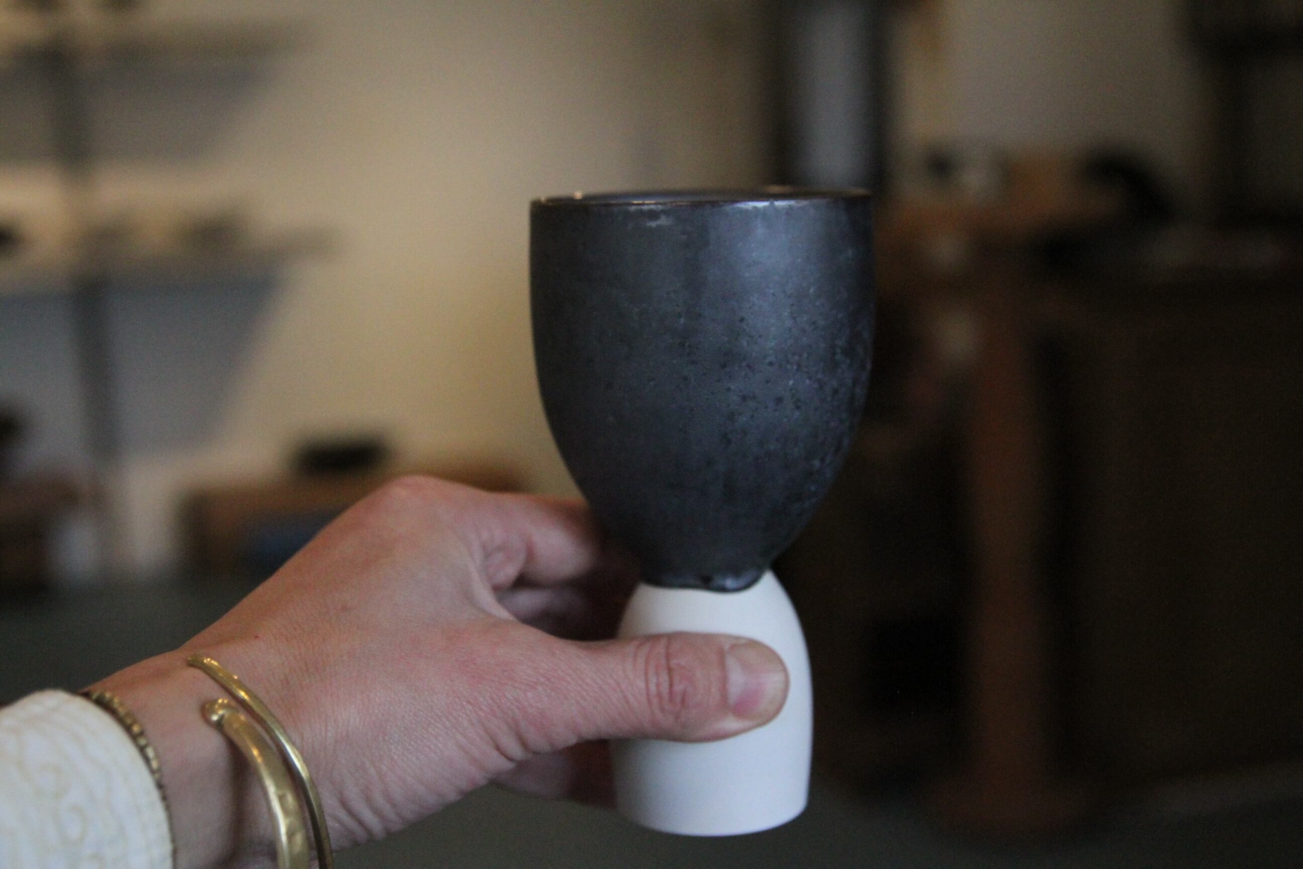 熊本は天草の陶芸家、金澤宏紀氏の器です。こちらはトールカップ。勝利の美酒よろしく、飾りたくなるくらいに凛々しい他にないカップです。