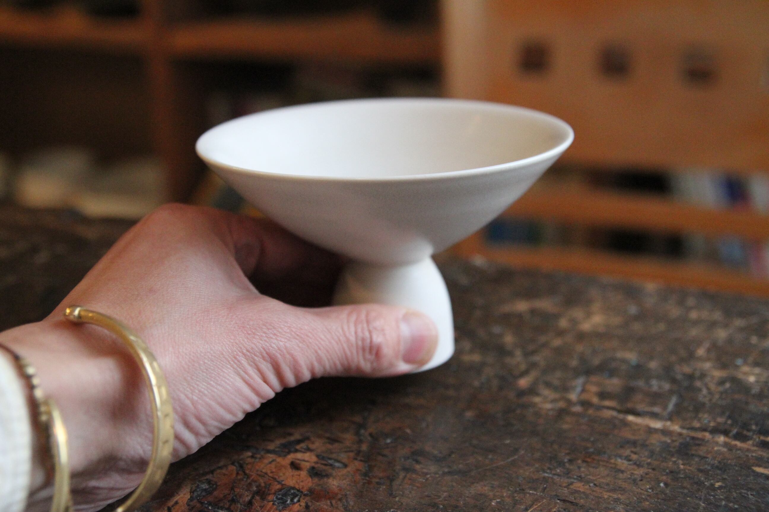 熊本は天草の陶芸家、金澤宏紀氏の器です。こちらは台座付きの皿。背丈があるので食卓で映えるし、いつもの料理を特別にしてくれること間違いなしです。