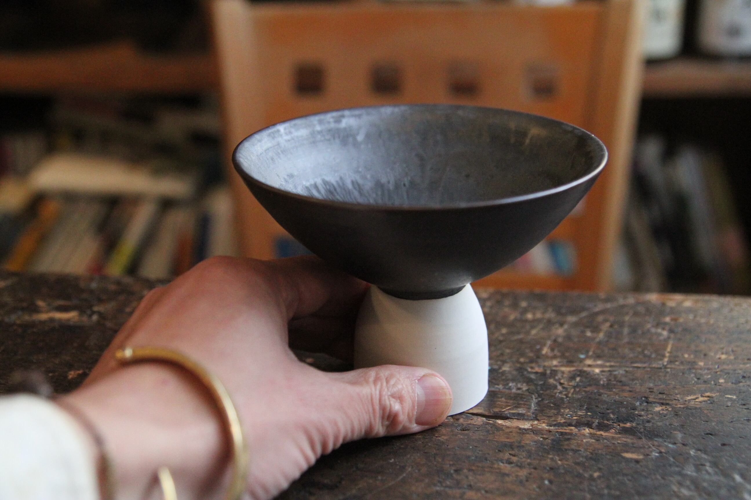 熊本は天草の陶芸家、金澤宏紀氏の器です。こちらは台座付きの皿。背丈があるので食卓で映えるし、いつもの料理を特別にしてくれること間違いなしです。