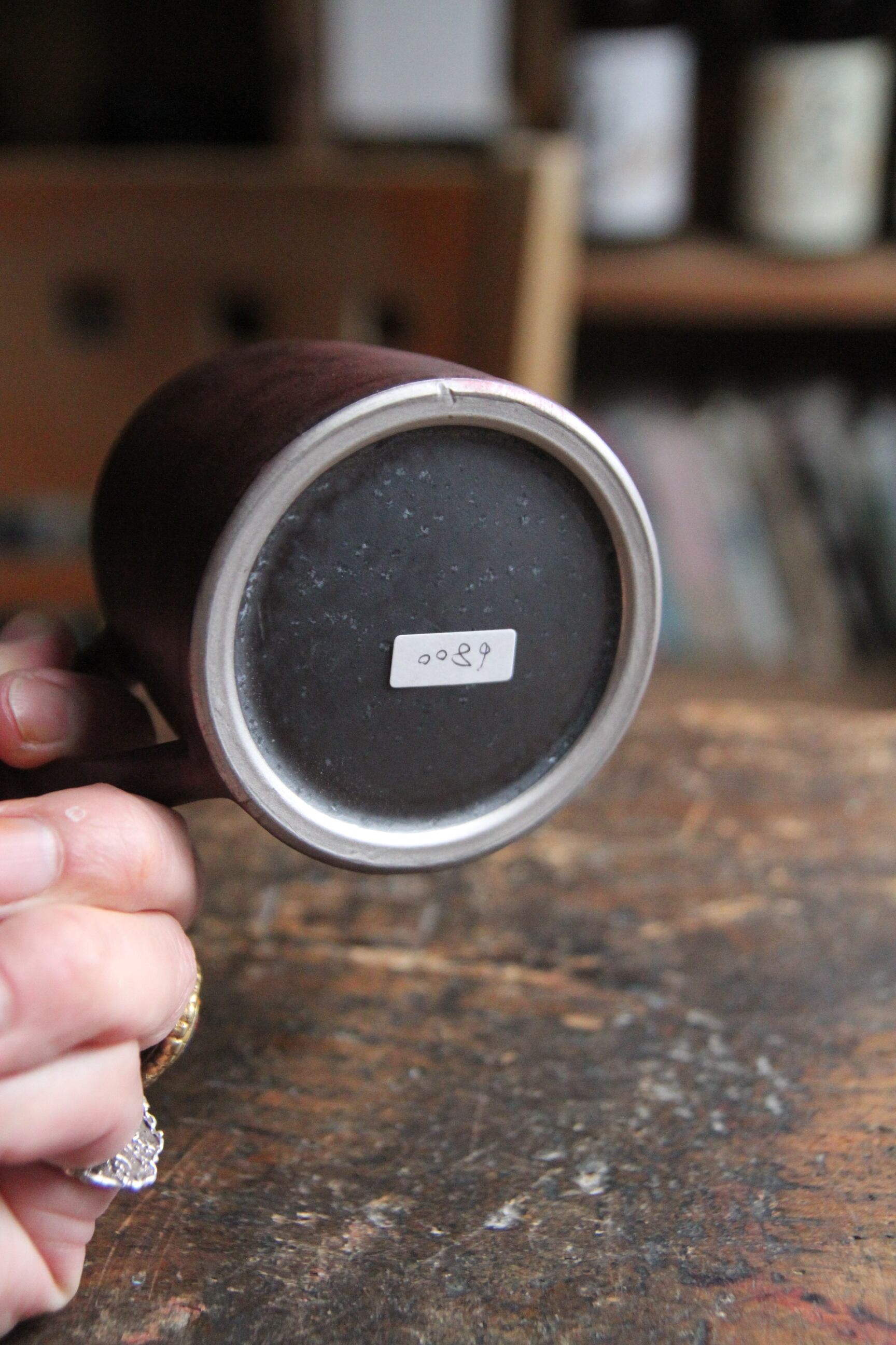 天草の陶石を用いた磁器作品、ロクロで描かれる滑らかで美しい曲線、口当たりや手触りの良いその風合い。なかでも黒は鉄分を多く含んだ釉薬、赤はそこに漆、金はそこに真鍮を上絵して焼いています。裏面も銀で装飾してあるこだわり。