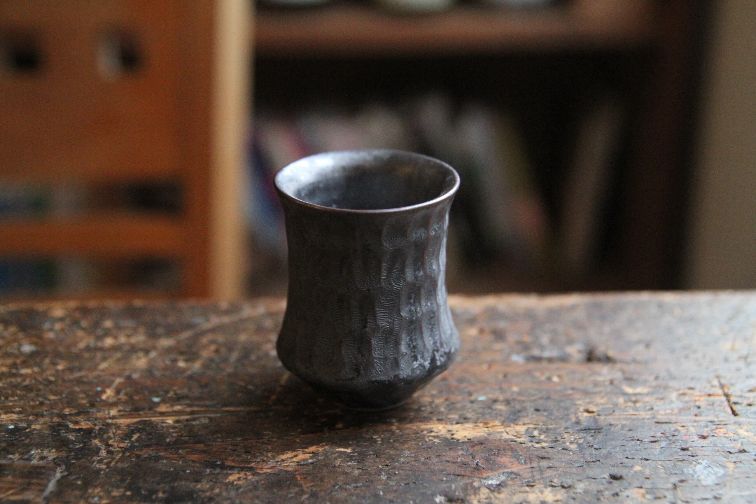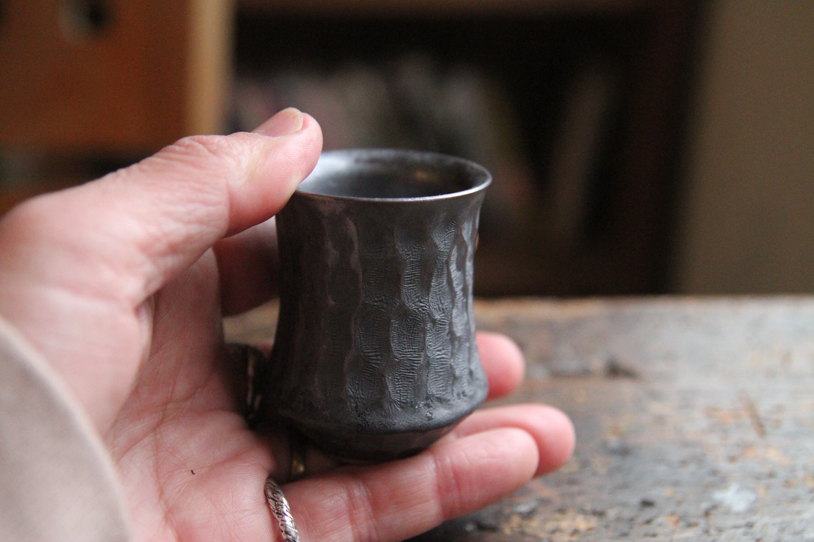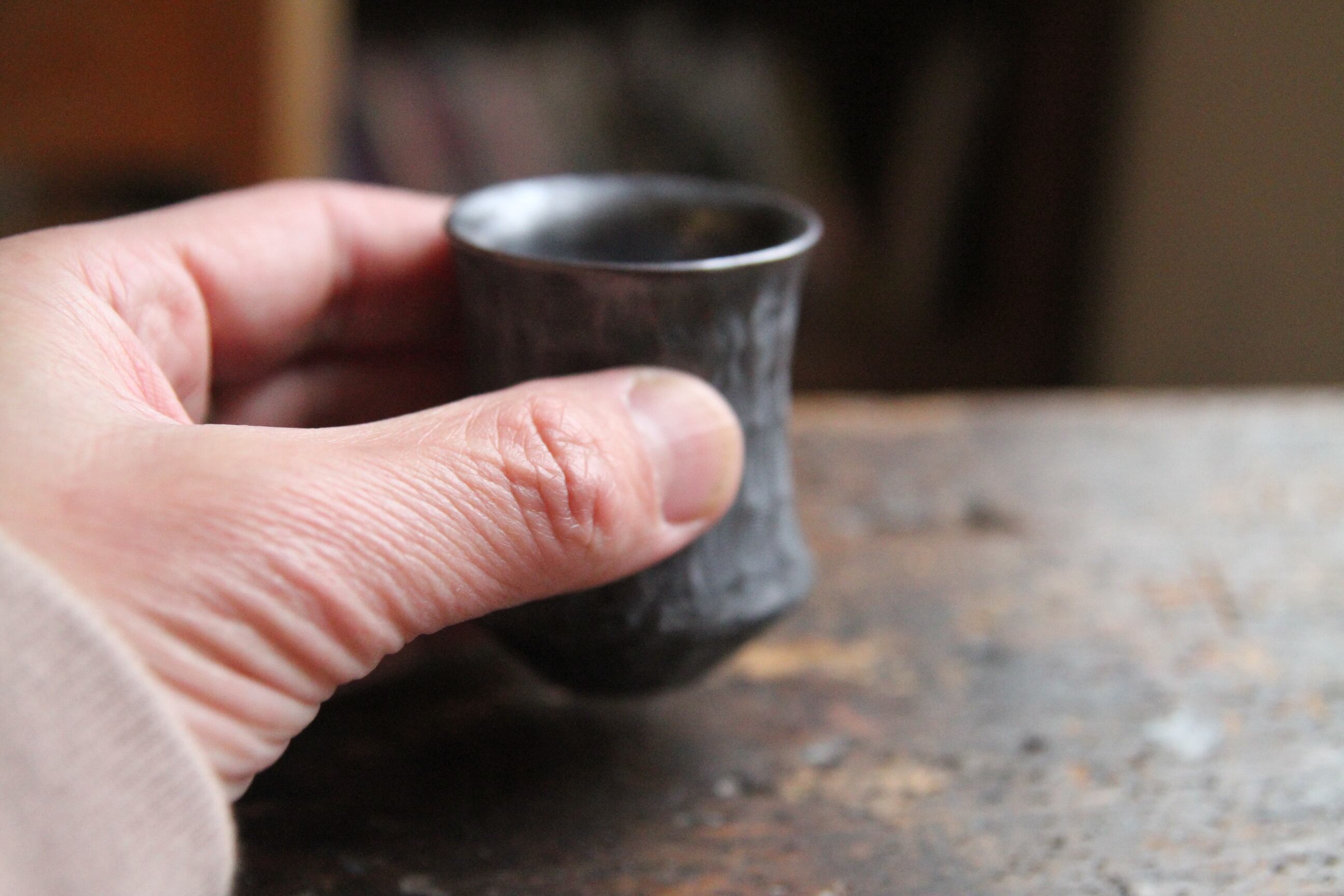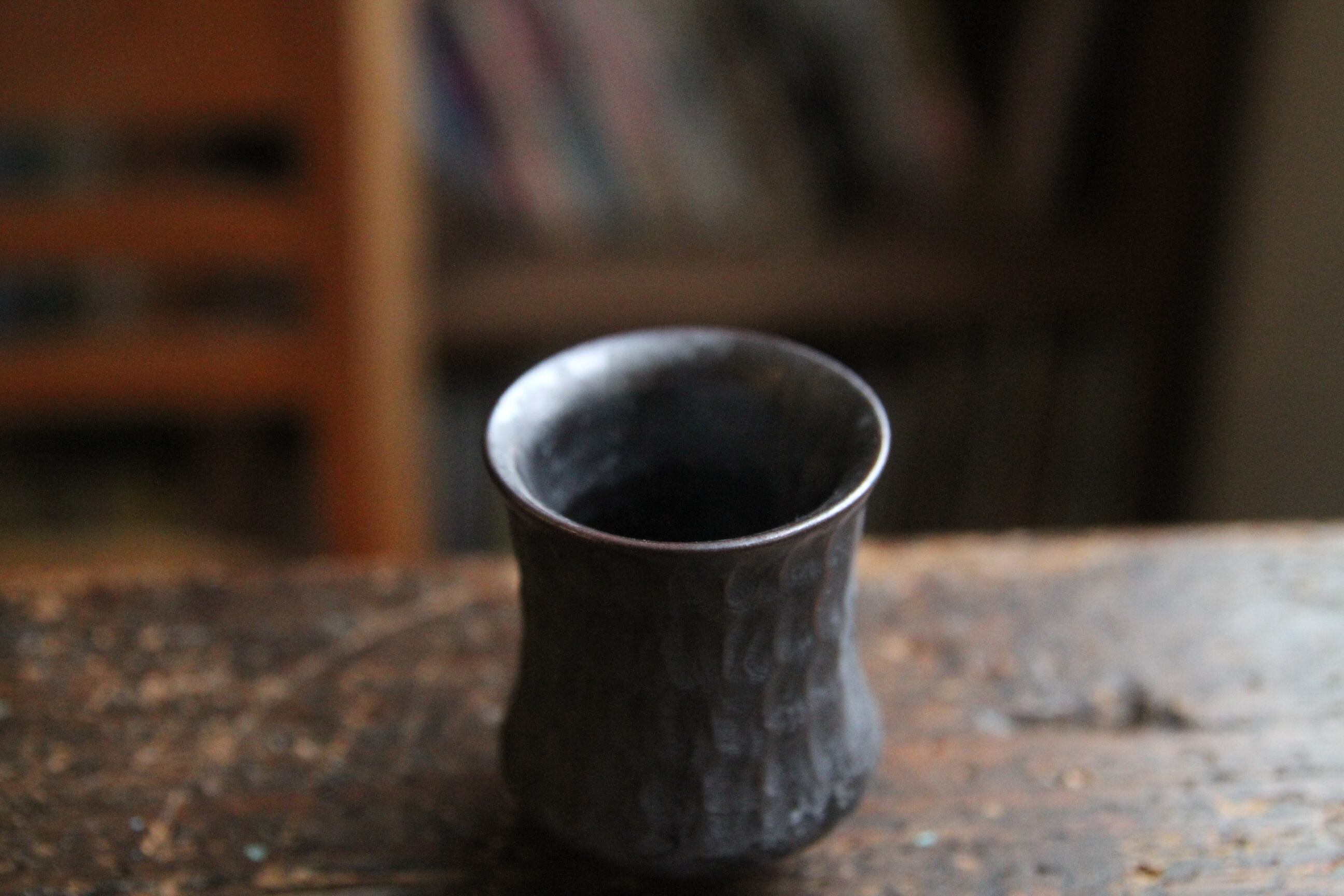 熊本は天草の陶芸家、金澤宏紀氏の器です。こちらは小さなカップ。お猪口。凛々しくも美しい、やっぱりこれは日本酒を入れて飲みたいですね。