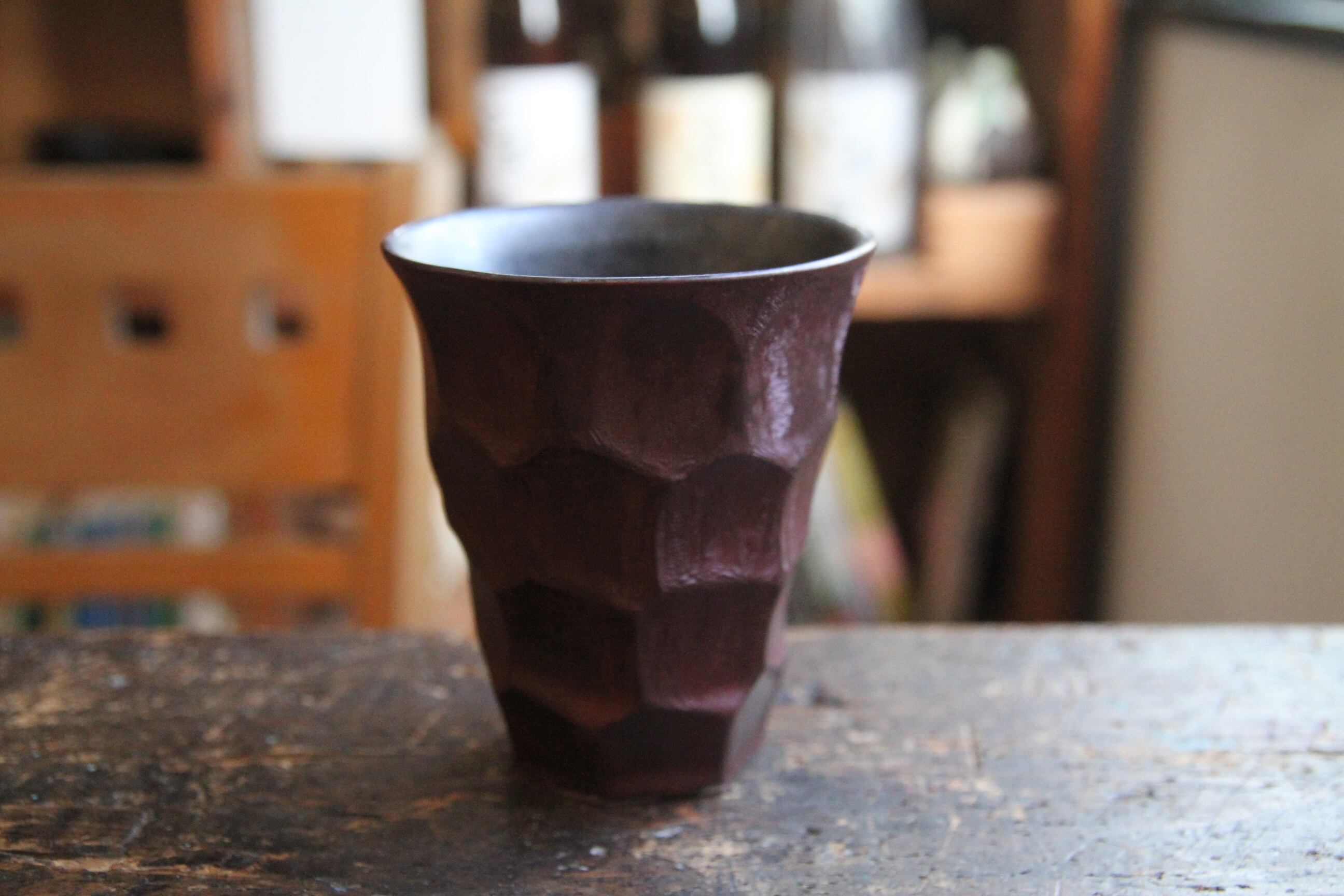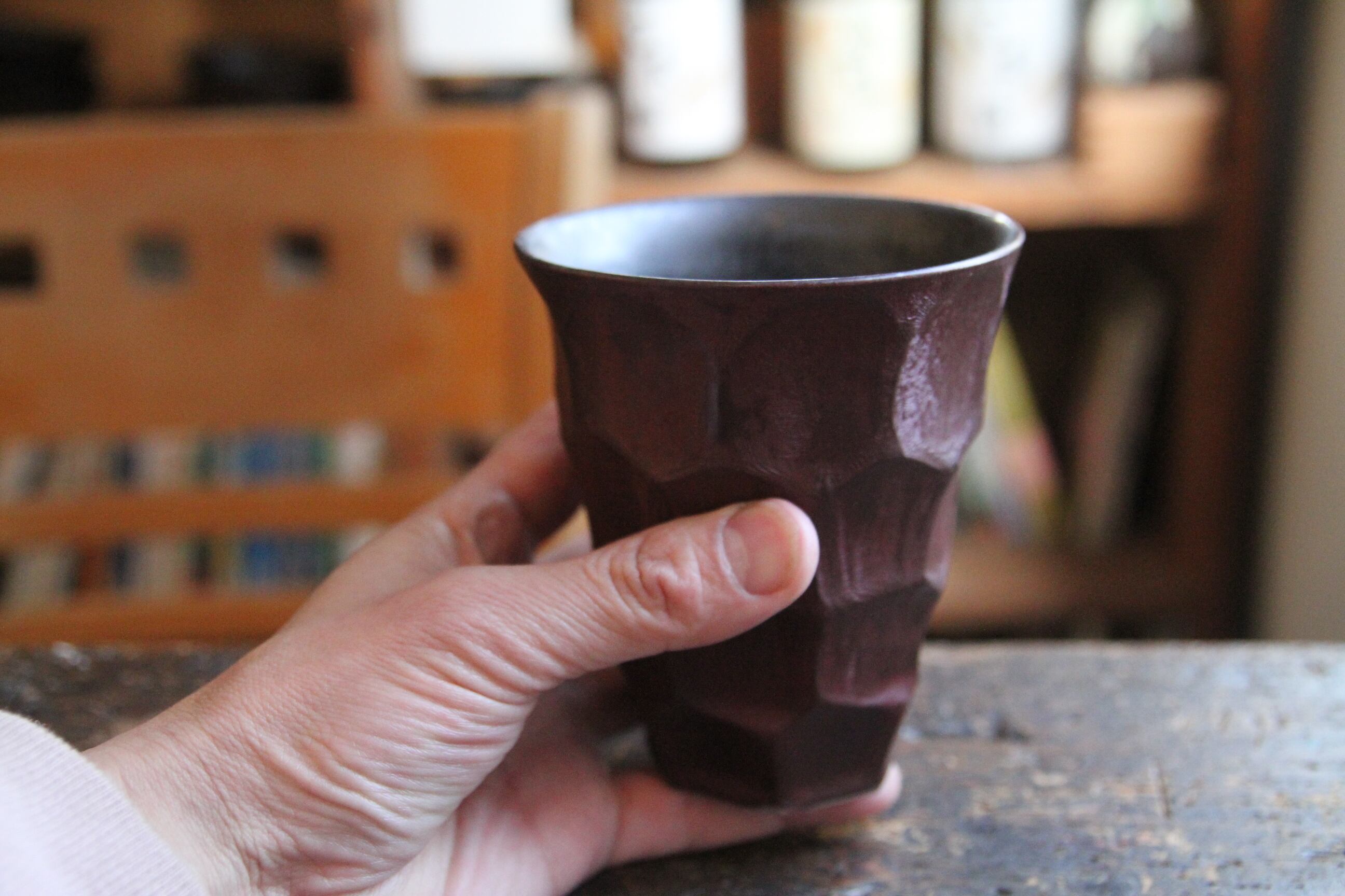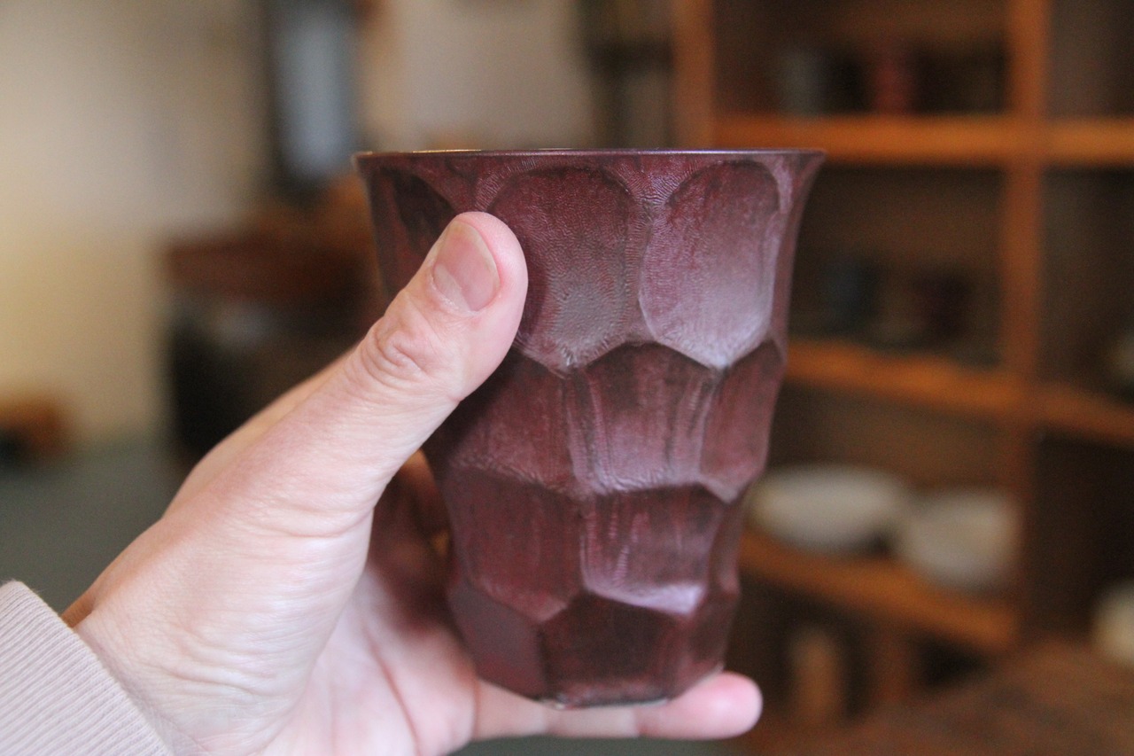 熊本は天草の陶芸家、金澤宏紀氏の器です。こちらは通称メタルカップ。メタリックな質感とあくまで握りやすいグリップ、容量もたっぷり、王者の風格でピールやハイボールなどをどうぞ。