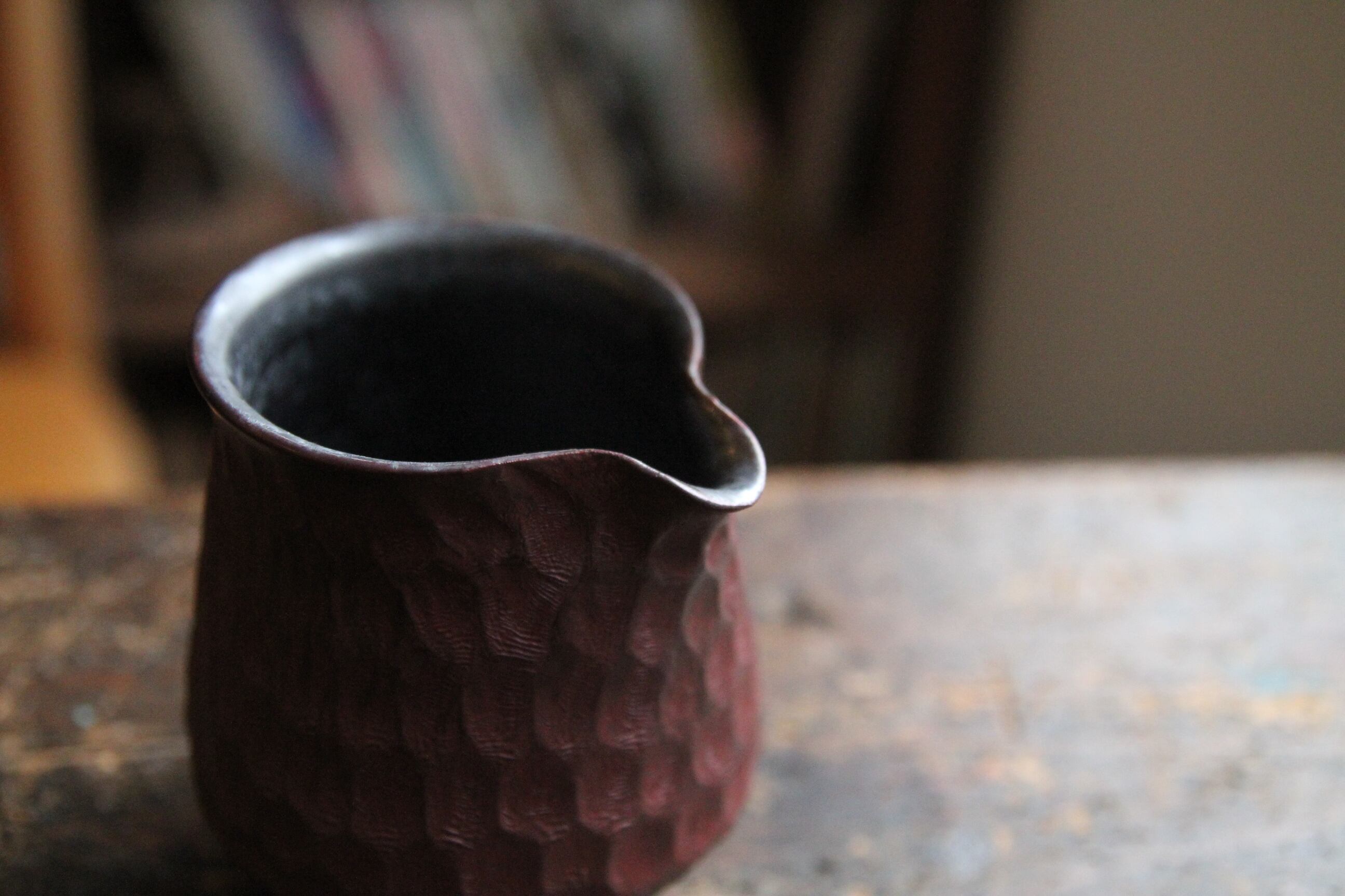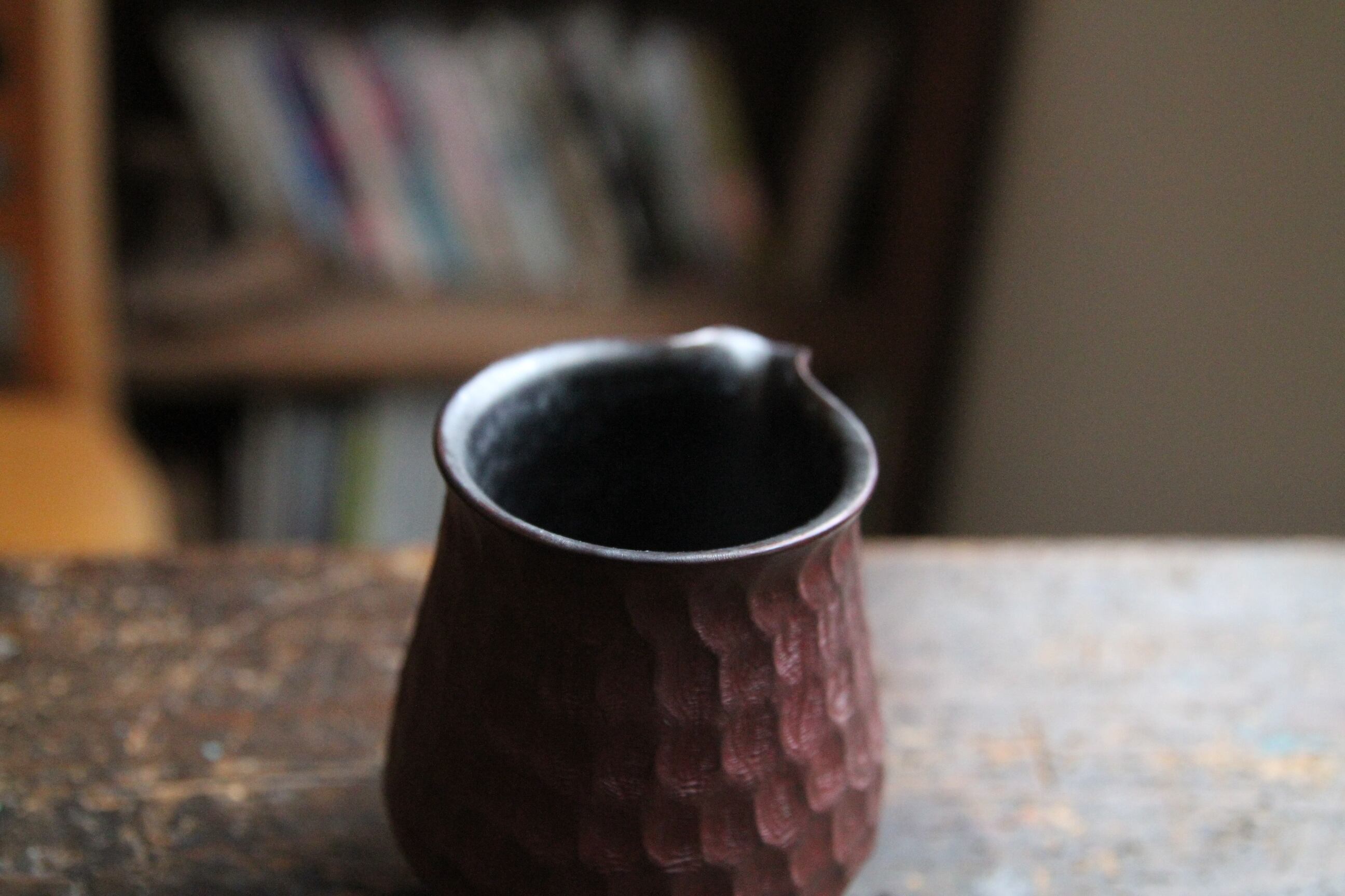 熊本は天草の陶芸家、金澤宏紀氏の器です。こちらは片口。ソリッドな注ぎ口でキレ良く持ちやすくつい飲み過ぎ必至の酒器でございます。