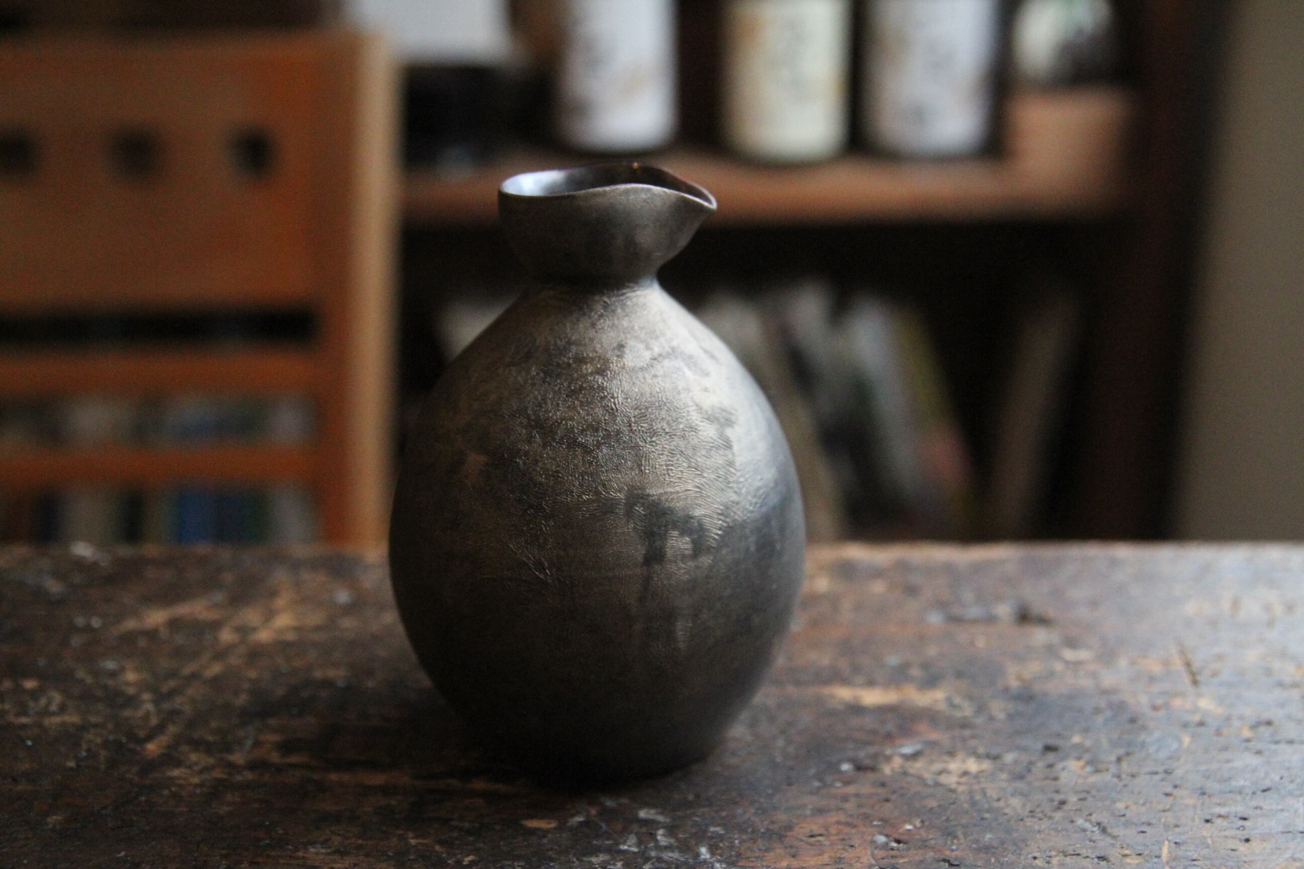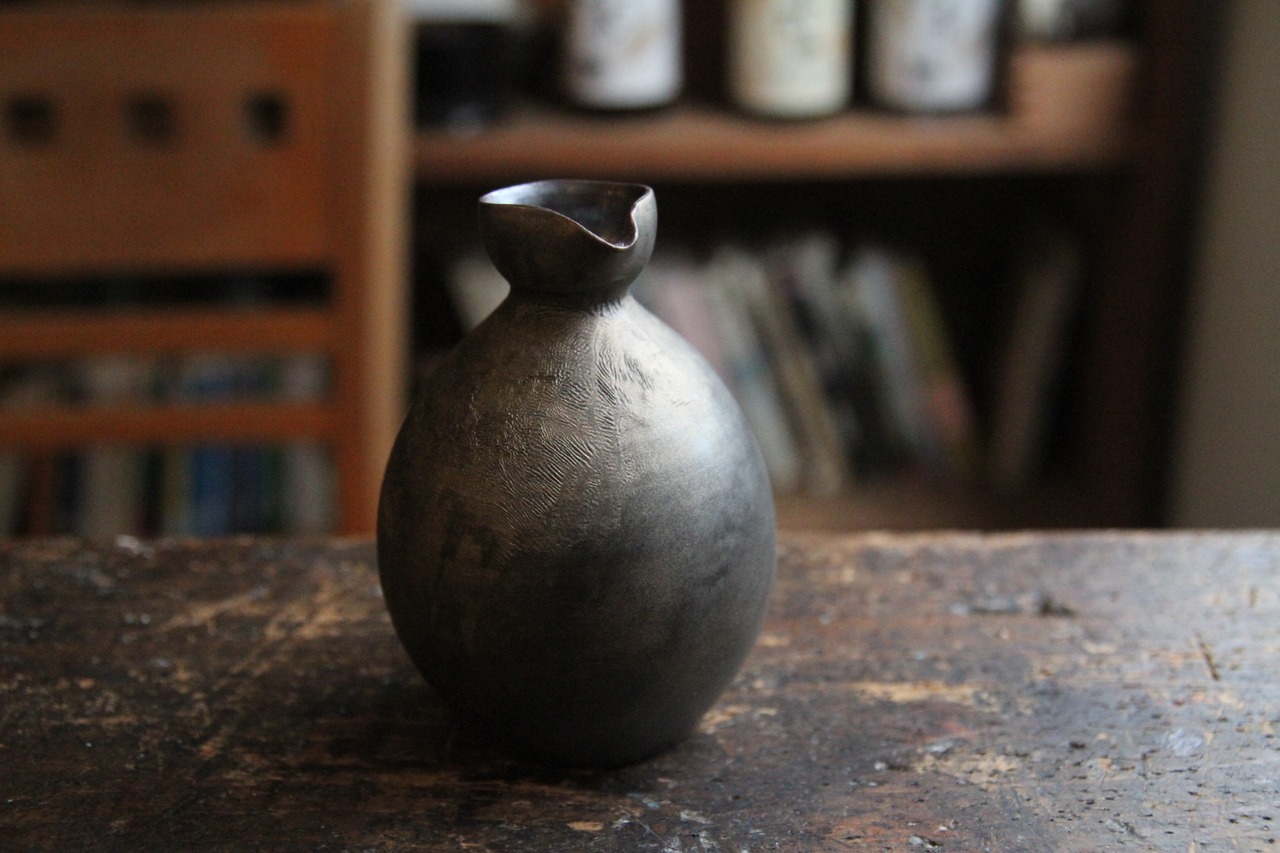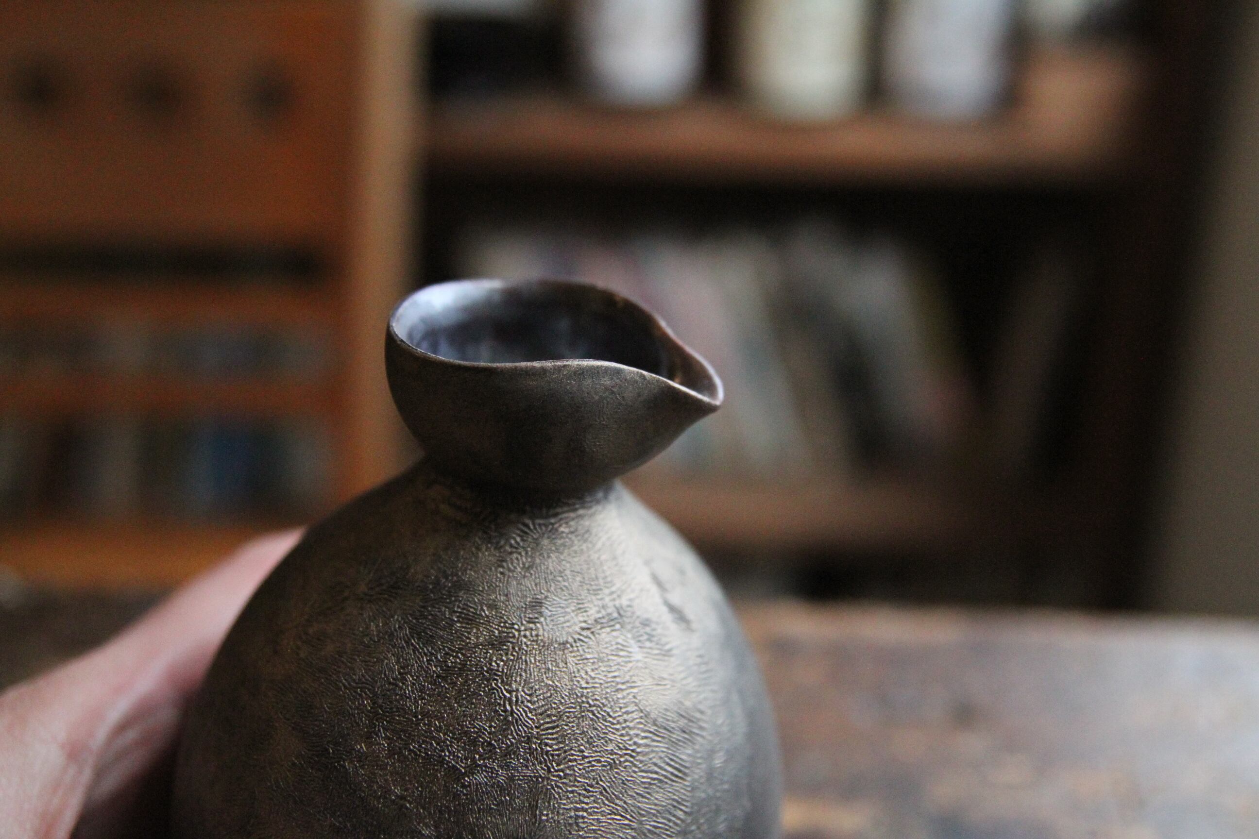 熊本は天草の陶芸家、金澤宏紀氏の器です。こちらはお銚子。ソリッドな注ぎ口でキレ良く持ちやすくつい飲み過ぎ必至の酒器でございます。