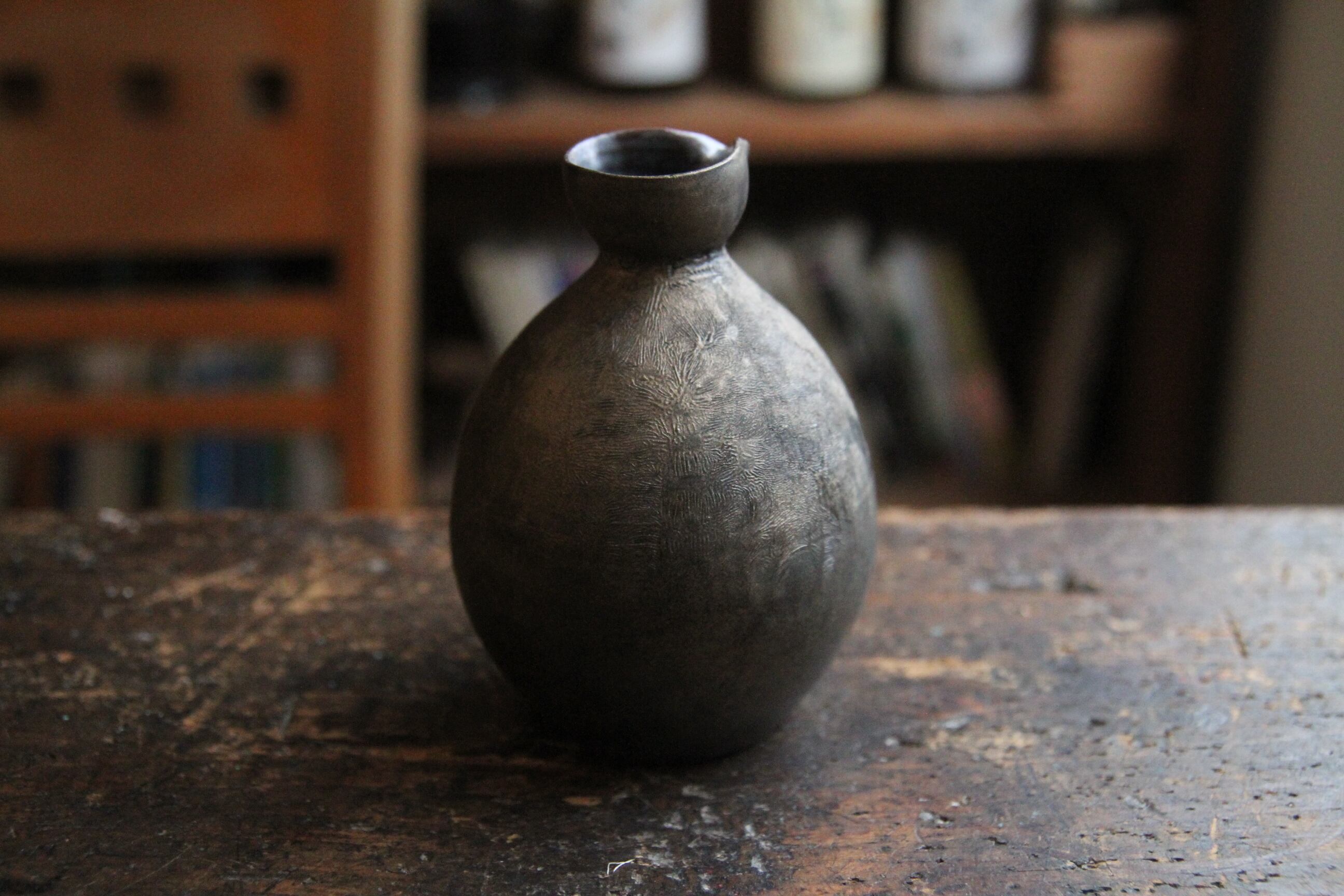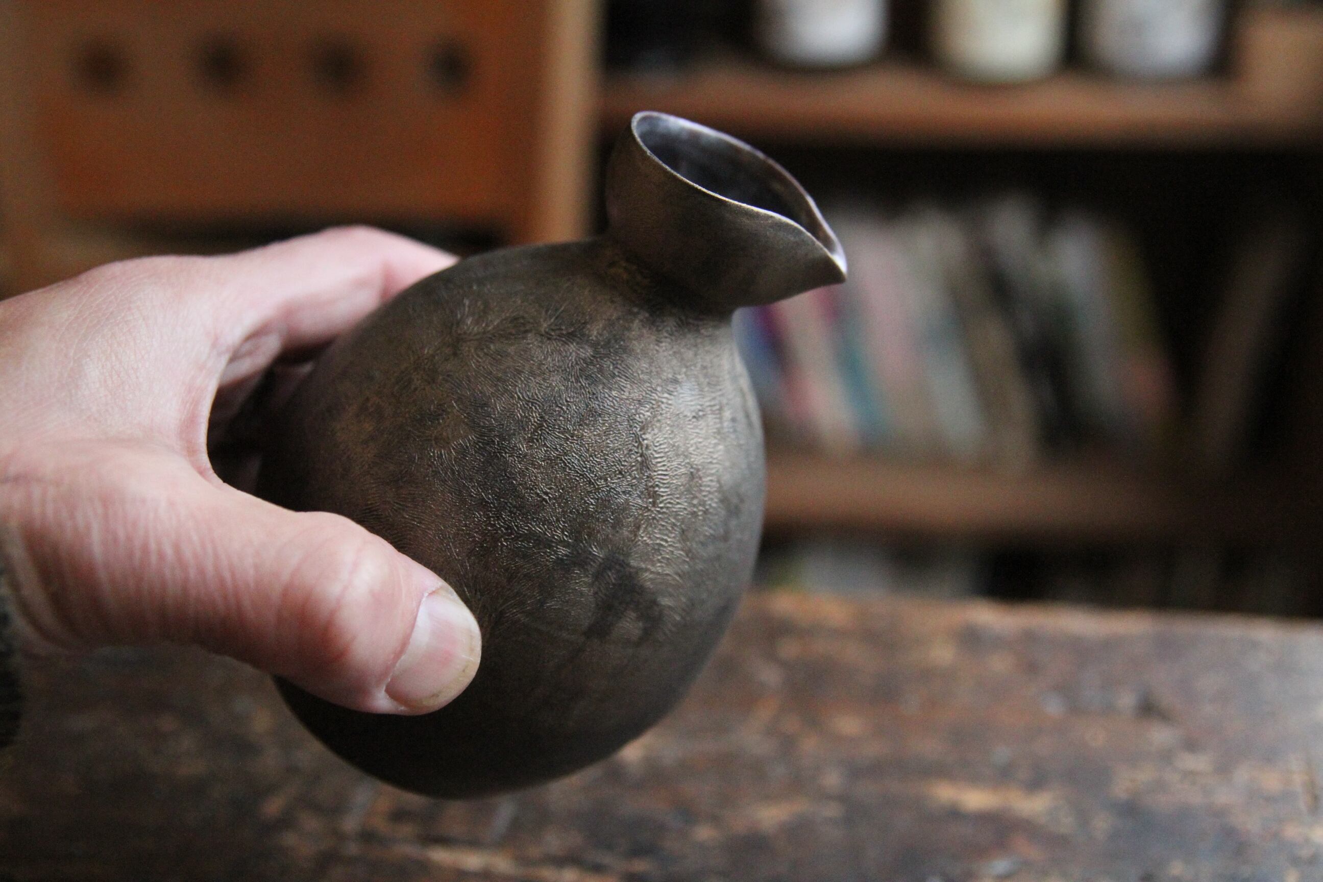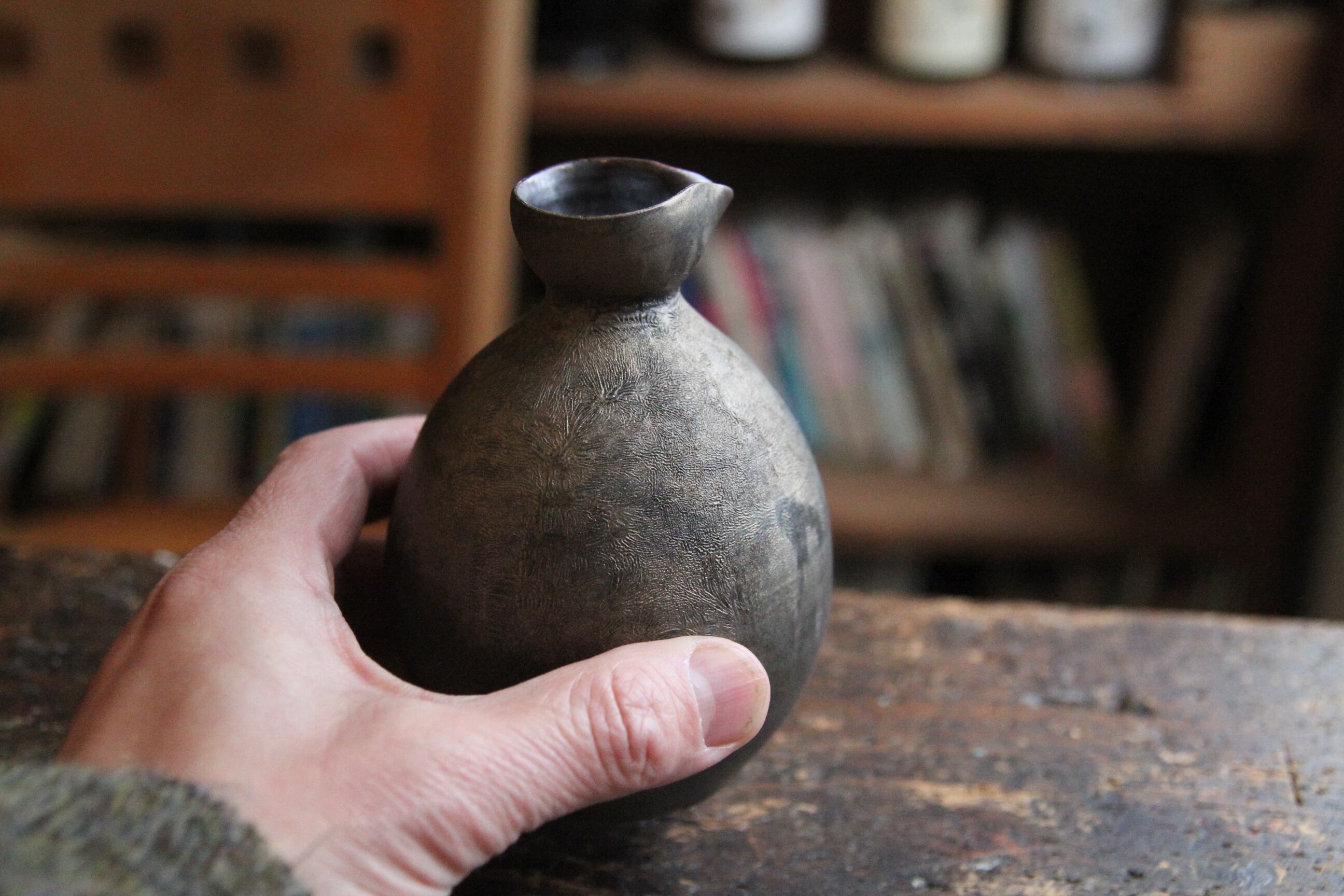 熊本は天草の陶芸家、金澤宏紀氏の器です。こちらはお銚子。ソリッドな注ぎ口でキレ良く持ちやすくつい飲み過ぎ必至の酒器でございます。