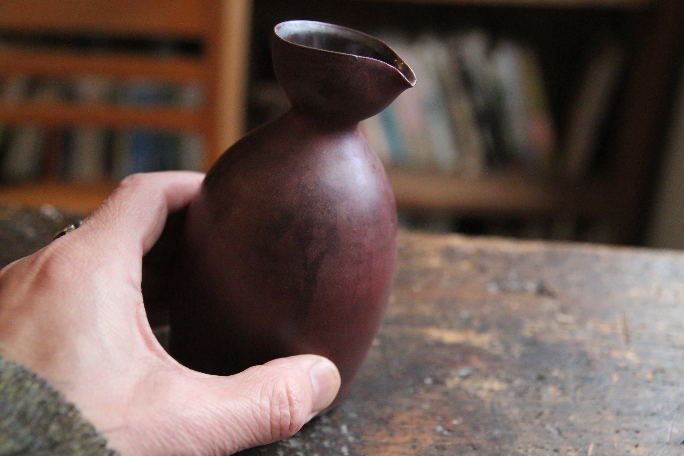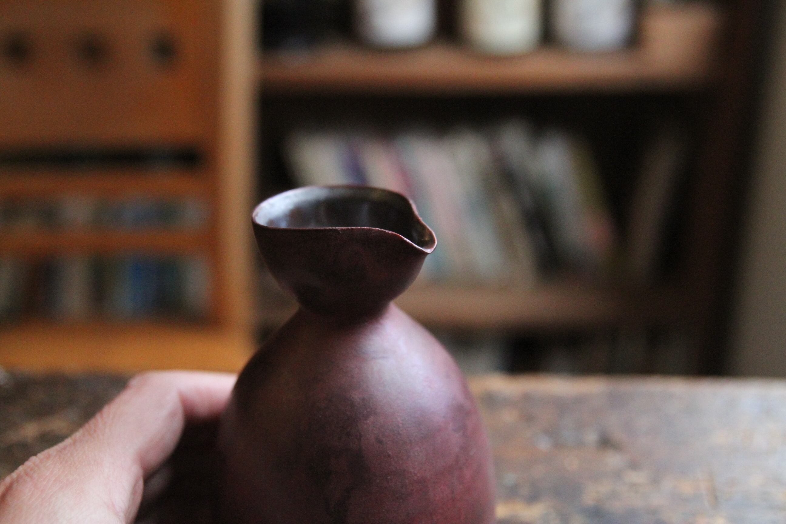熊本は天草の陶芸家、金澤宏紀氏の器です。こちらはお銚子。ソリッドな注ぎ口でキレ良く持ちやすくつい飲み過ぎ必至の酒器でございます。