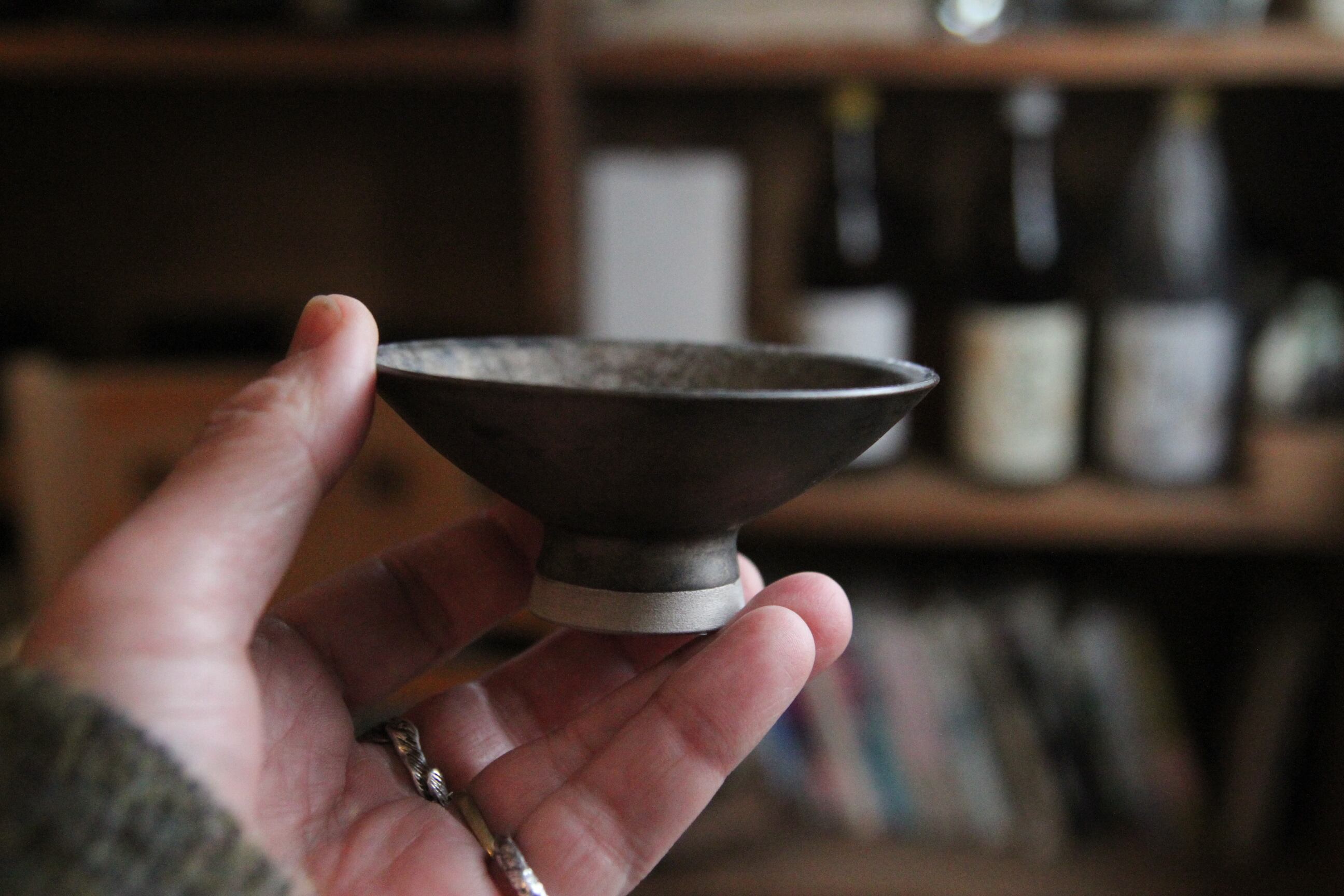 熊本は天草の陶芸家、金澤宏紀氏の器です。こちらは杯。あまりに美しい杯。飲んでもいいけど、上品な酒の肴をちょいと盛りたいです。