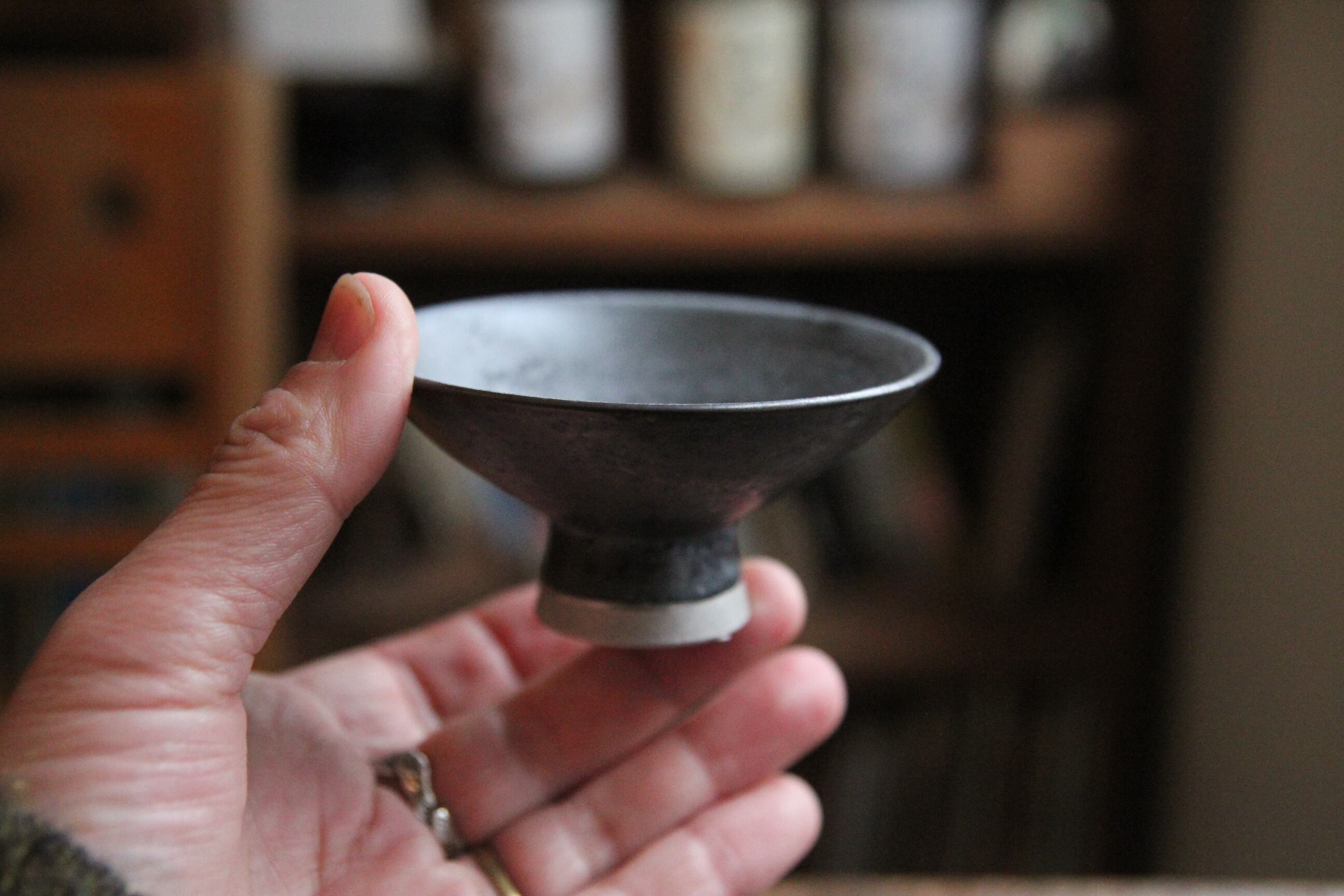 熊本は天草の陶芸家、金澤宏紀氏の器です。こちらは杯。あまりに美しい杯。飲んでもいいけど、上品な酒の肴をちょいと盛りたいです。