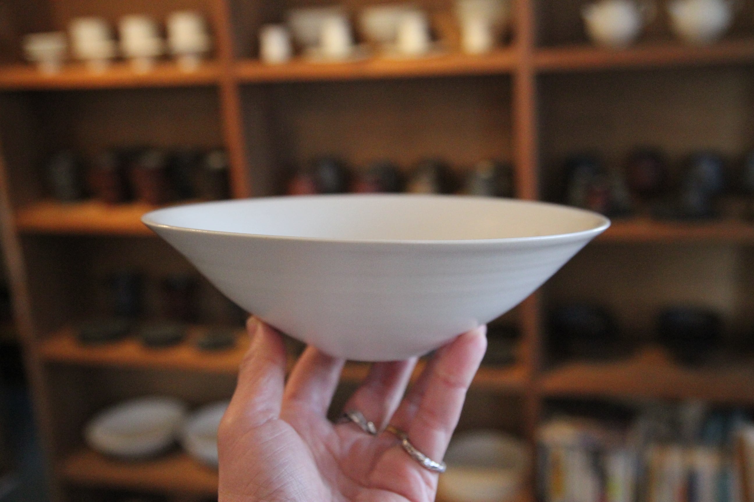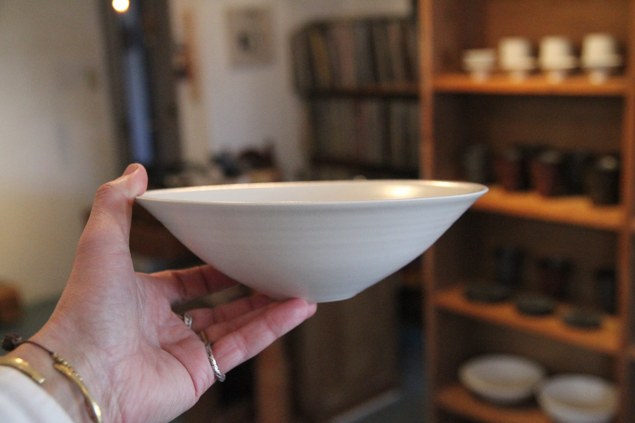 熊本は天草の陶芸家、金澤宏紀氏の器です。こちらは中鉢。煮物を入れたりサラダを盛ったりするのにちょうど良いくらいの大きさです。程よい深さなので、ぎりラーメンなんかもいけないかなぁ。どうだろう。