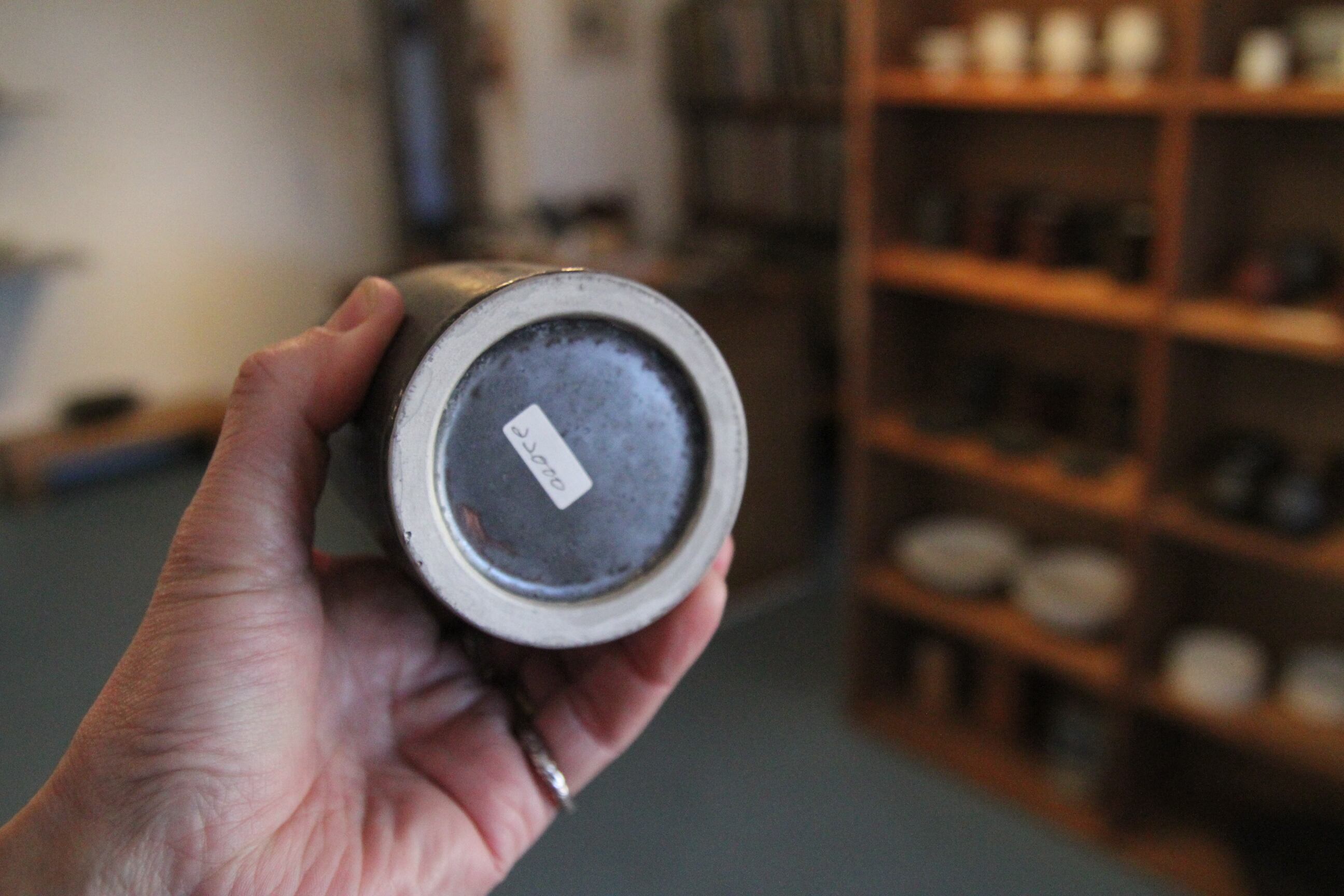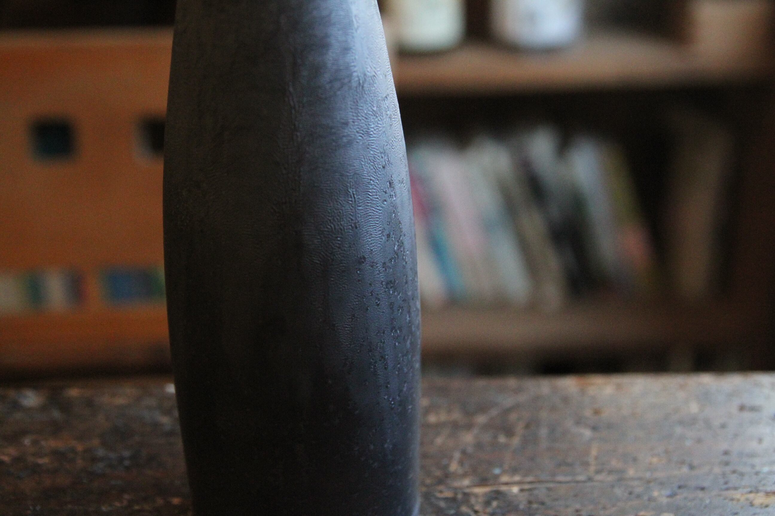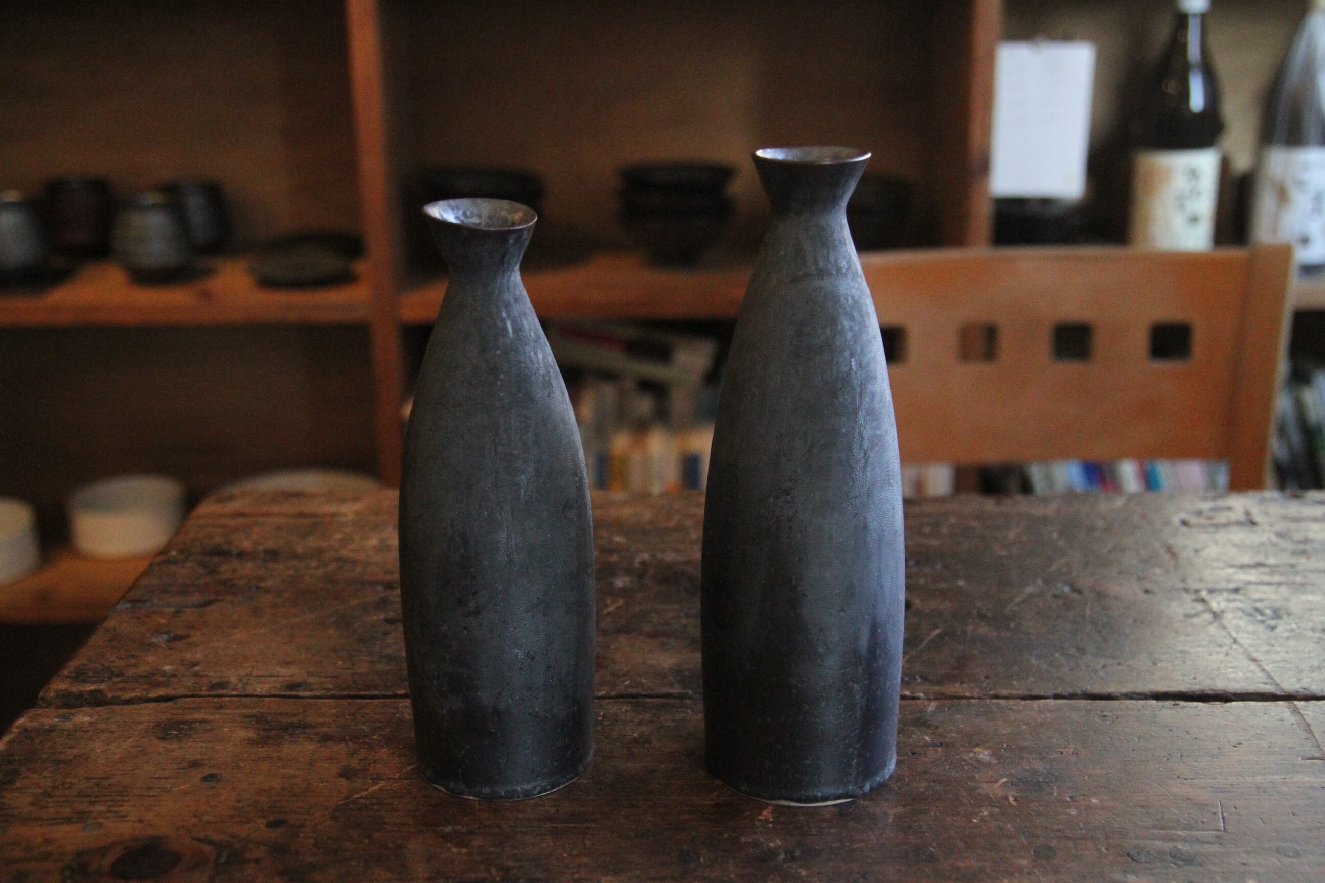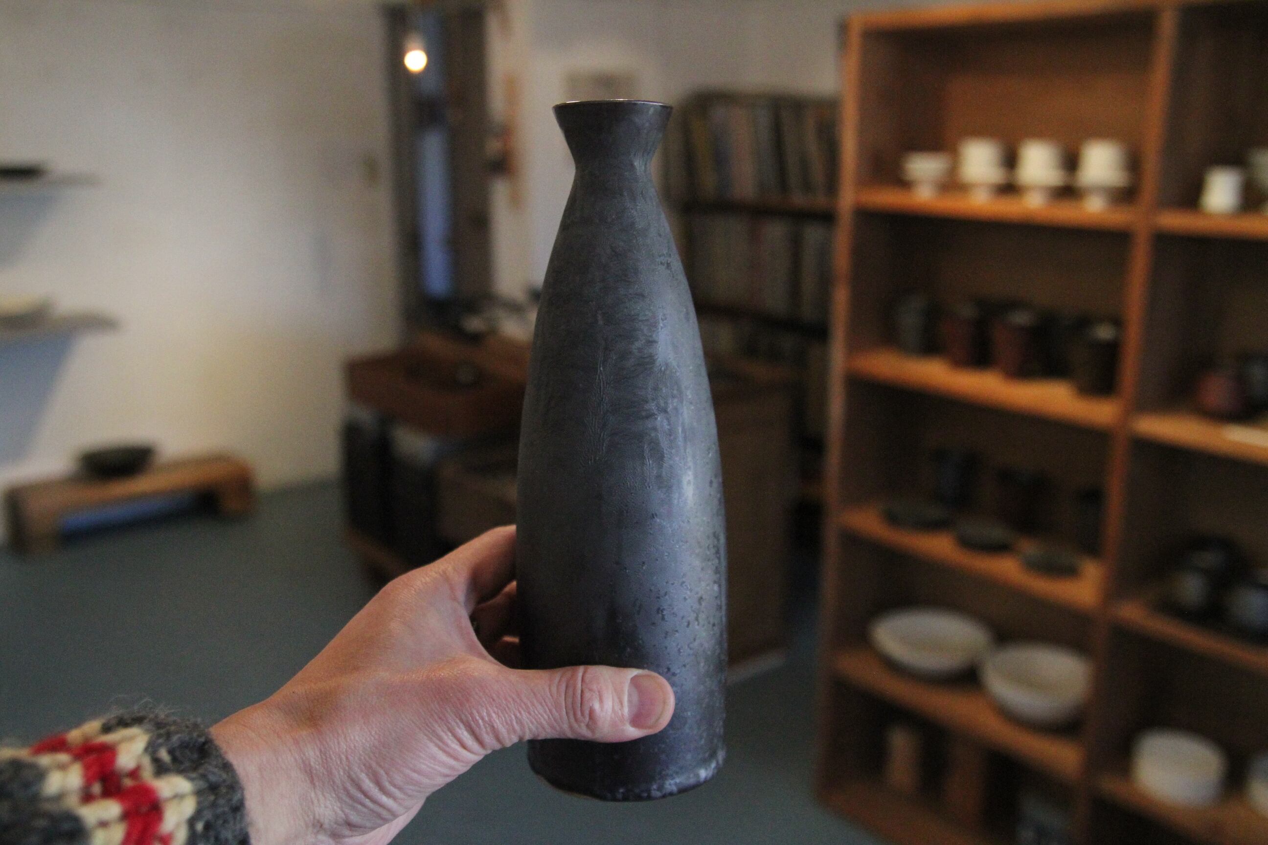 天草の陶石を用いた磁器作品、ロクロで描かれる滑らかで美しい曲線、口当たりや手触りの良いその風合い。なかでも黒は鉄分を多く含んだ釉薬、赤はそこに漆、金はそこに真鍮を上絵して焼いています。裏面も銀で装飾してあるこだわり。