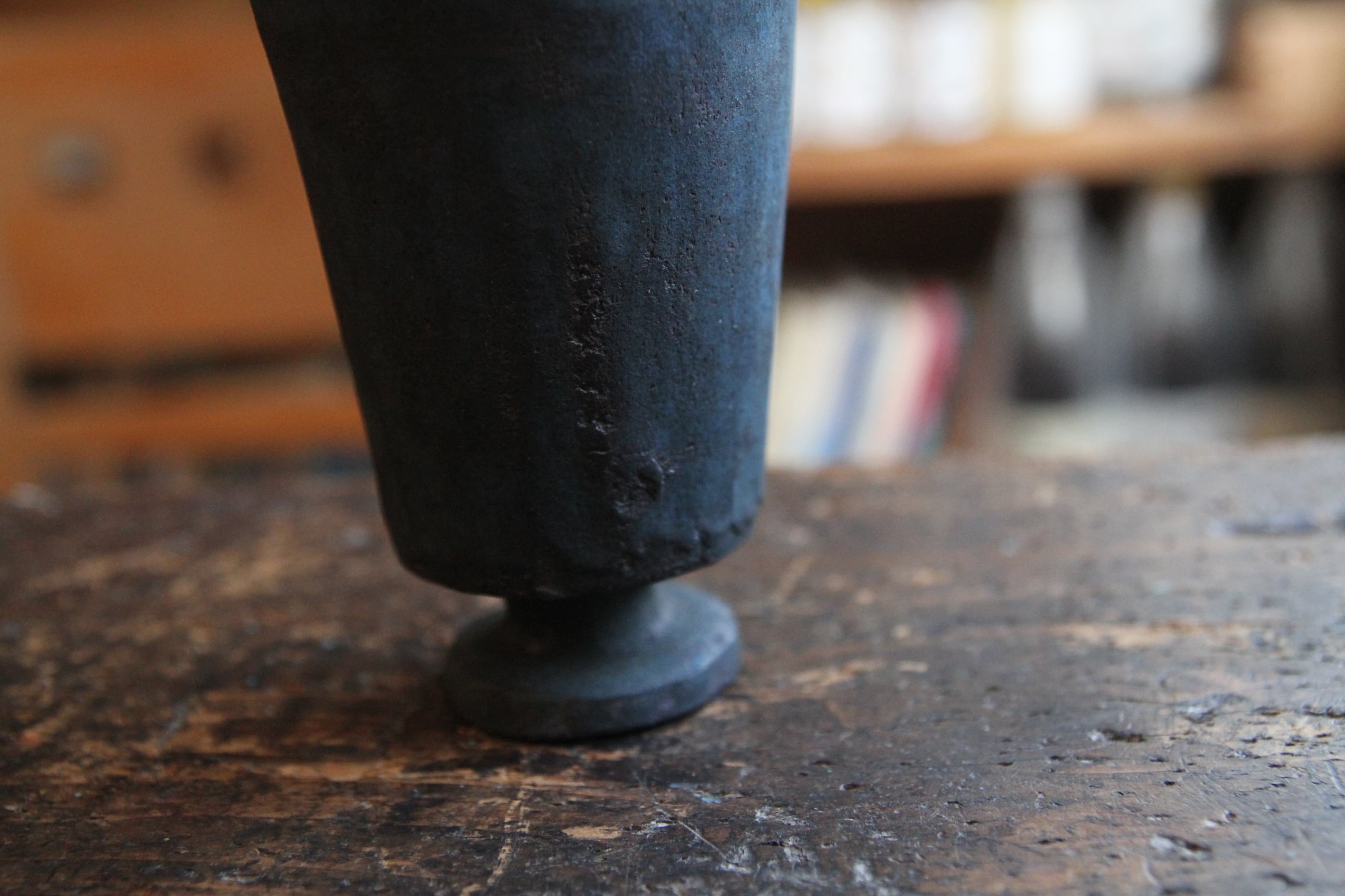 成形したあと、敢えて一度水に浸して独特の表情を出す、ちょっと他に見ない技法を用いた器。あくまで淡い凹凸を描くライン、時にまるで錆びついた風化のような表情、プライマルでありながらトライバルをも感じさせ、そしてそこはかとなくブルージー。虜になってしまう器。使うたびにしっとりした肌合いに。経年変化を愉しんでくださいませ。