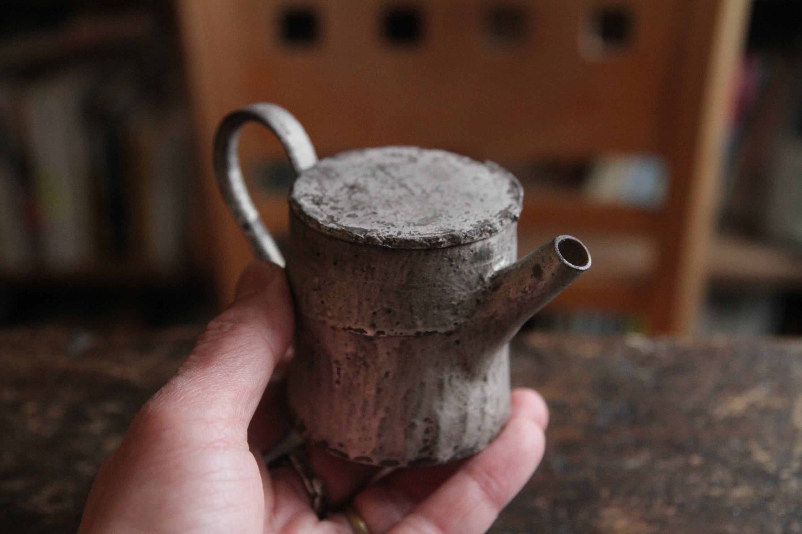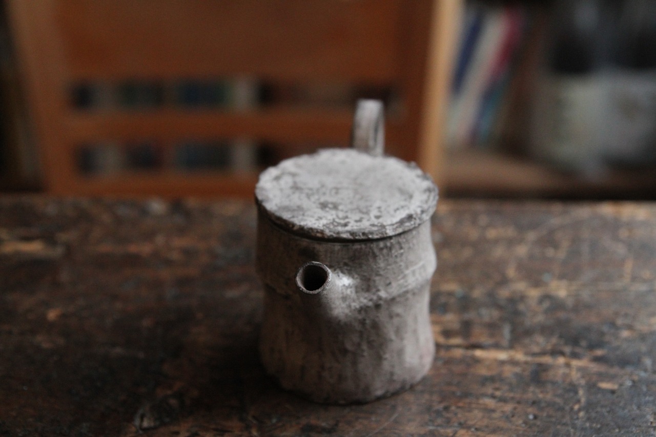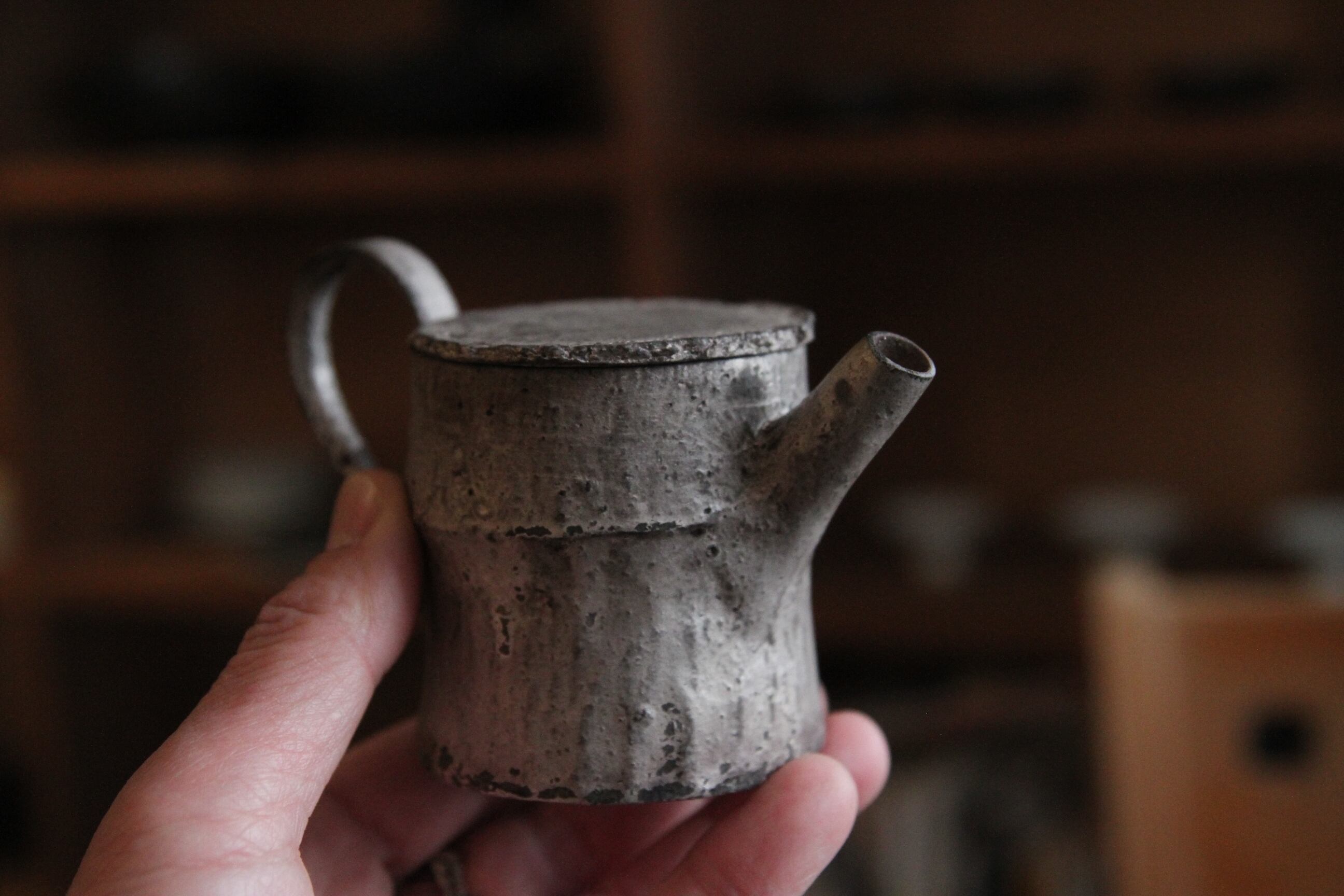 こちらは茶壺。銀彩の朽ちた表現が素晴らしい特別な逸品。大事に大事にずっと使ってあげてください。