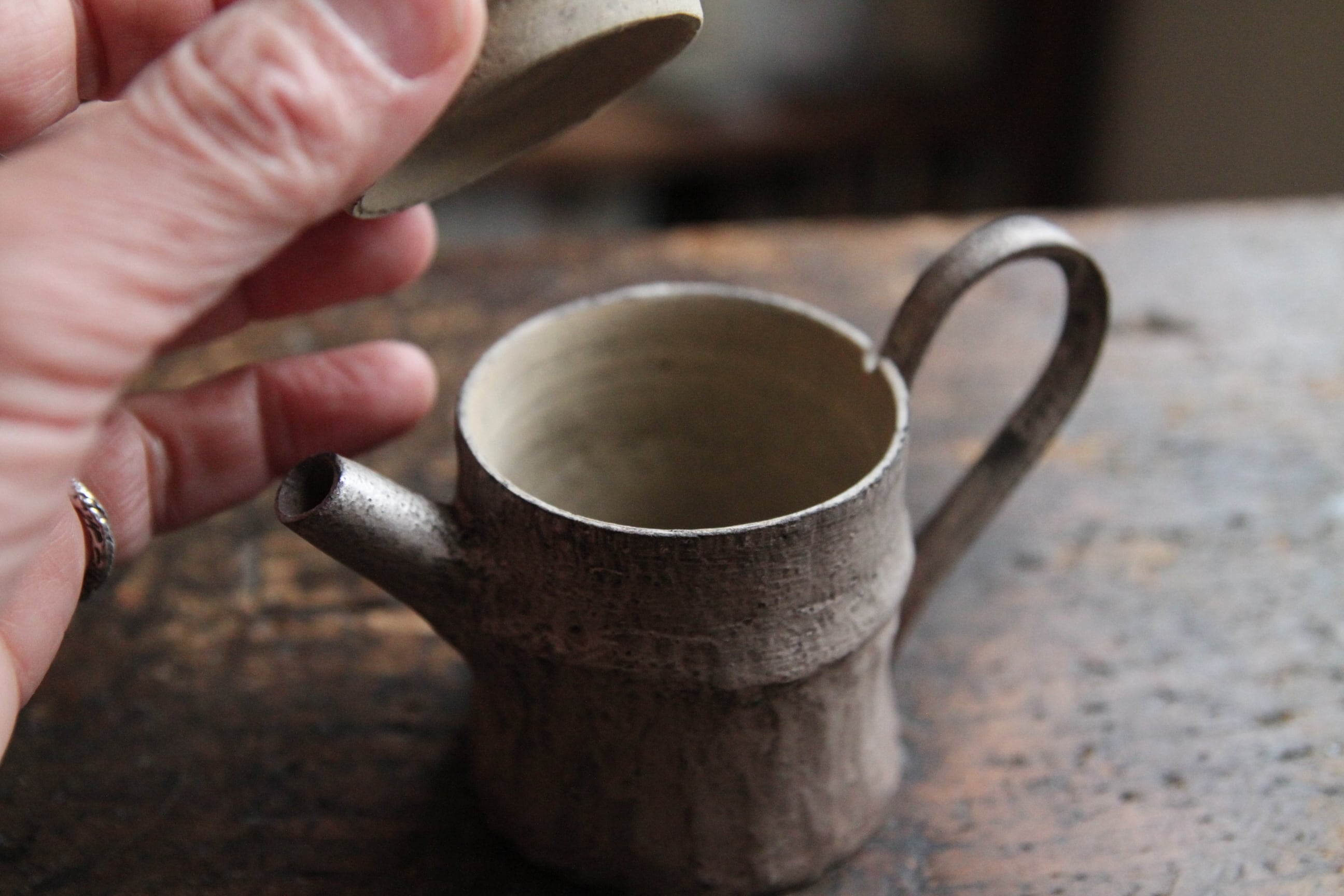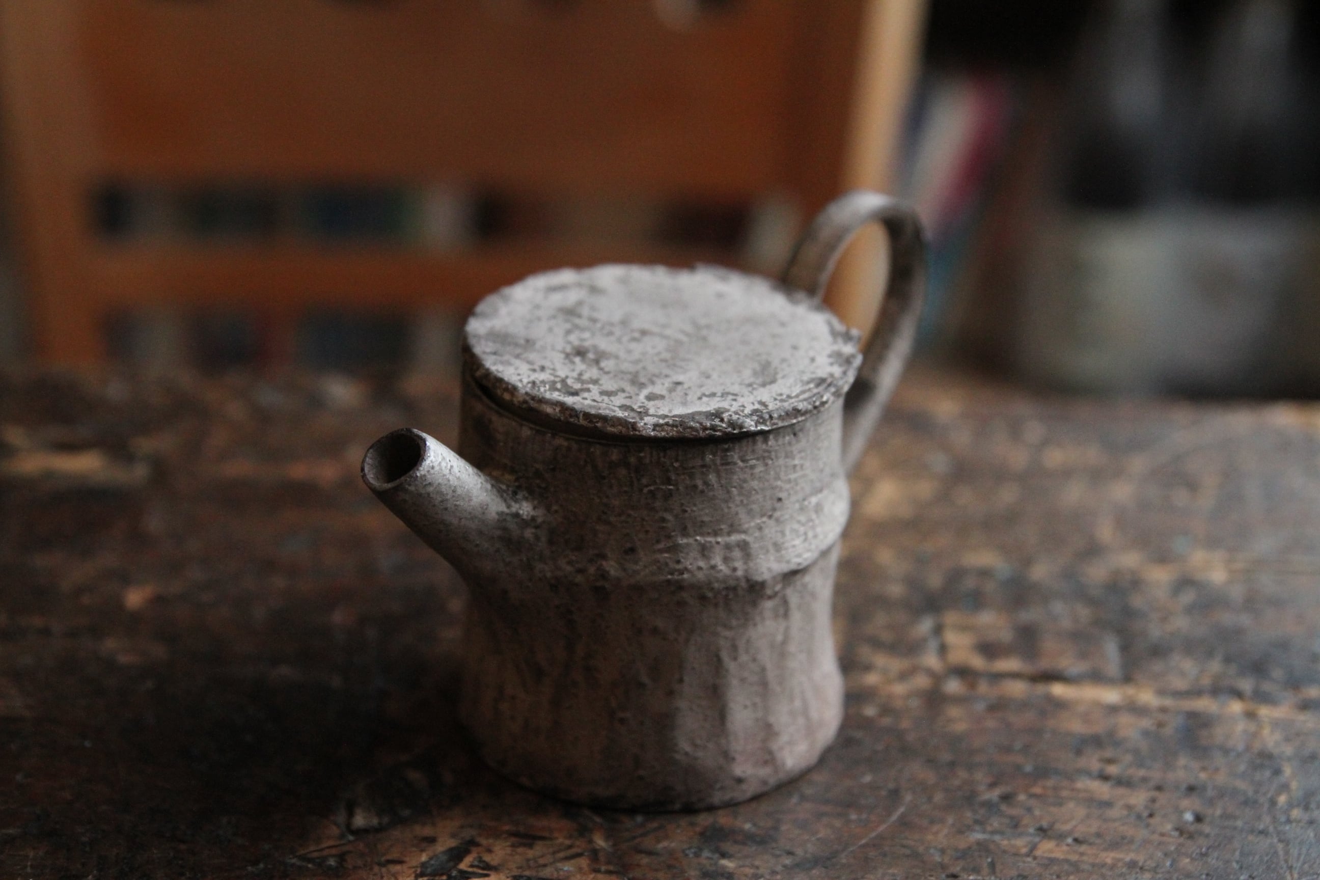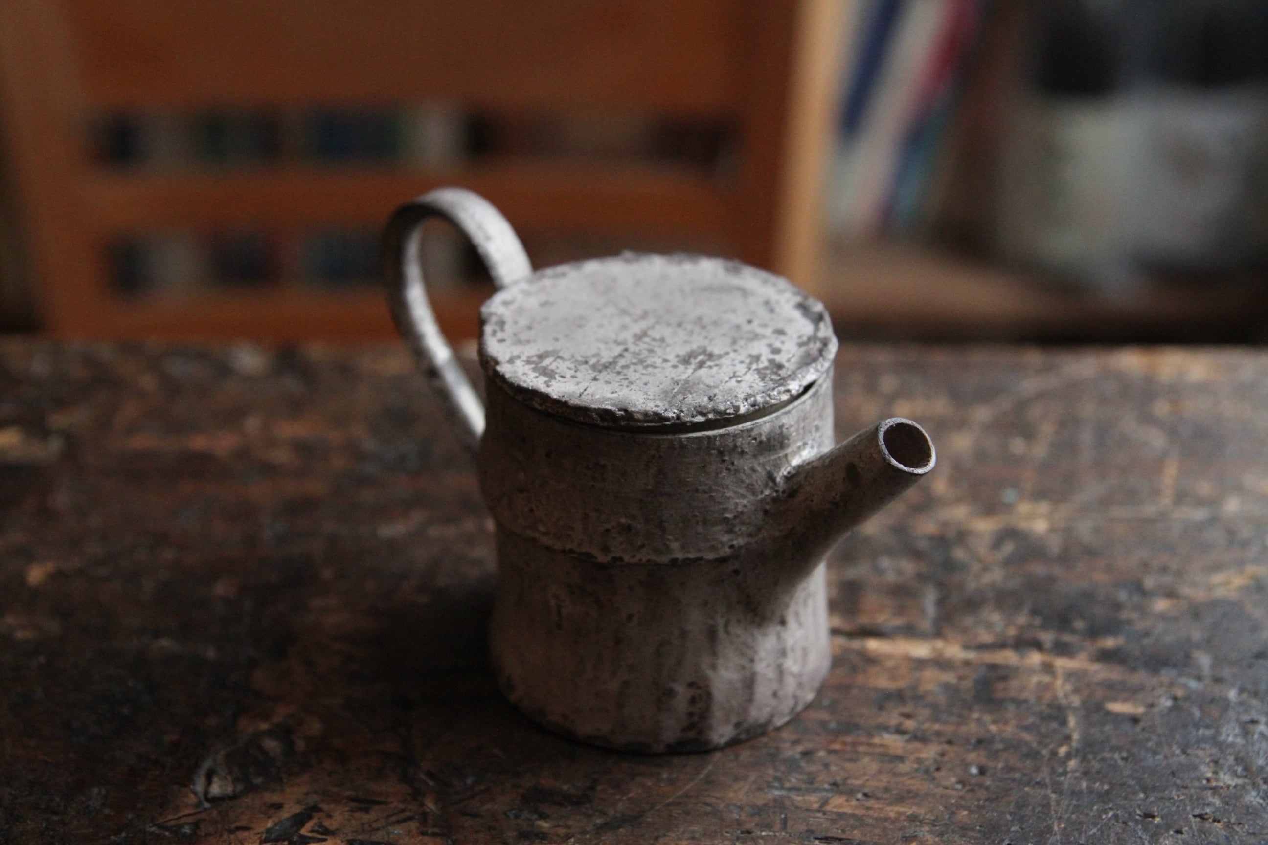 こちらは茶壺。銀彩の朽ちた表現が素晴らしい特別な逸品。大事に大事にずっと使ってあげてください。