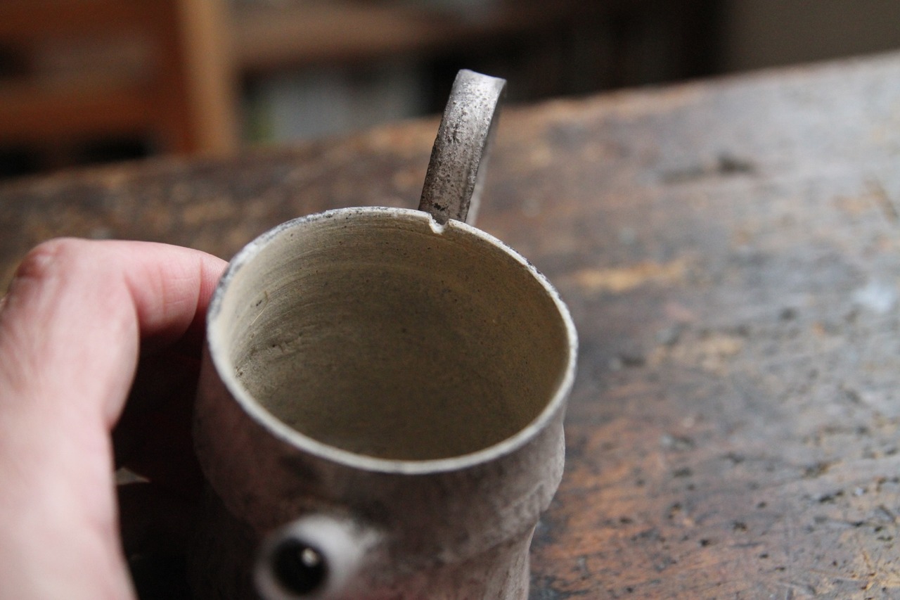 成形したあと、敢えて一度水に浸して独特の表情を出す、ちょっと他に見ない技法を用いた器。あくまで淡い凹凸を描くライン、時にまるで錆びついた風化のような表情、プライマルでありながらトライバルをも感じさせ、そしてそこはかとなくブルージー。虜になってしまう器。使うたびにしっとりした肌合いに。経年変化を愉しんでくださいませ。