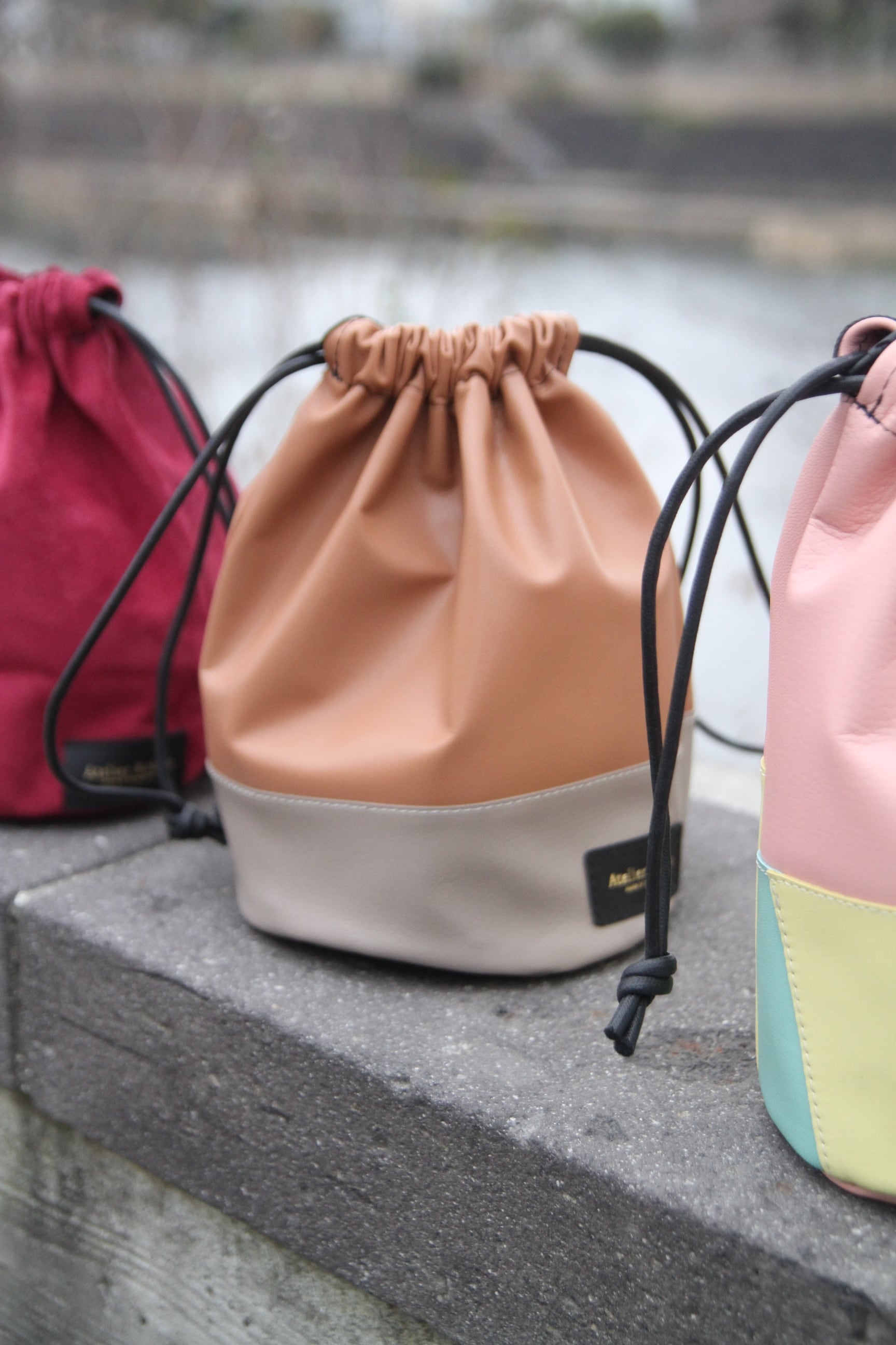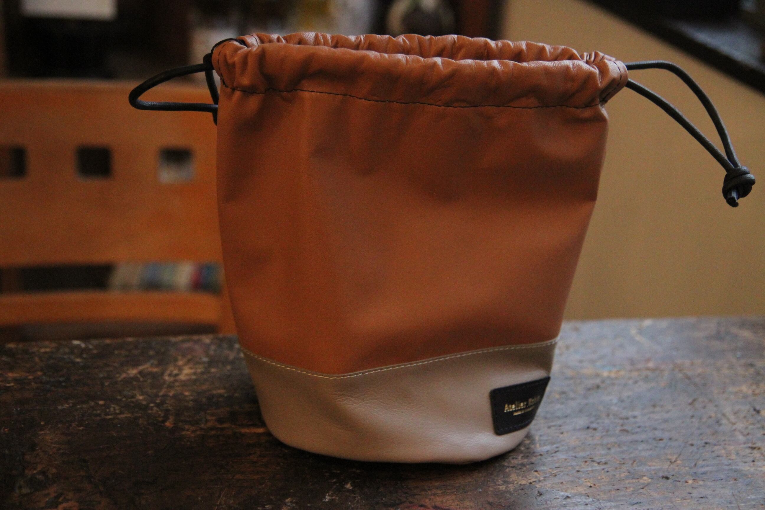 熊本は坪井にあるレザークラフトショップ『アトリエコビト』のDrawstring Bag。