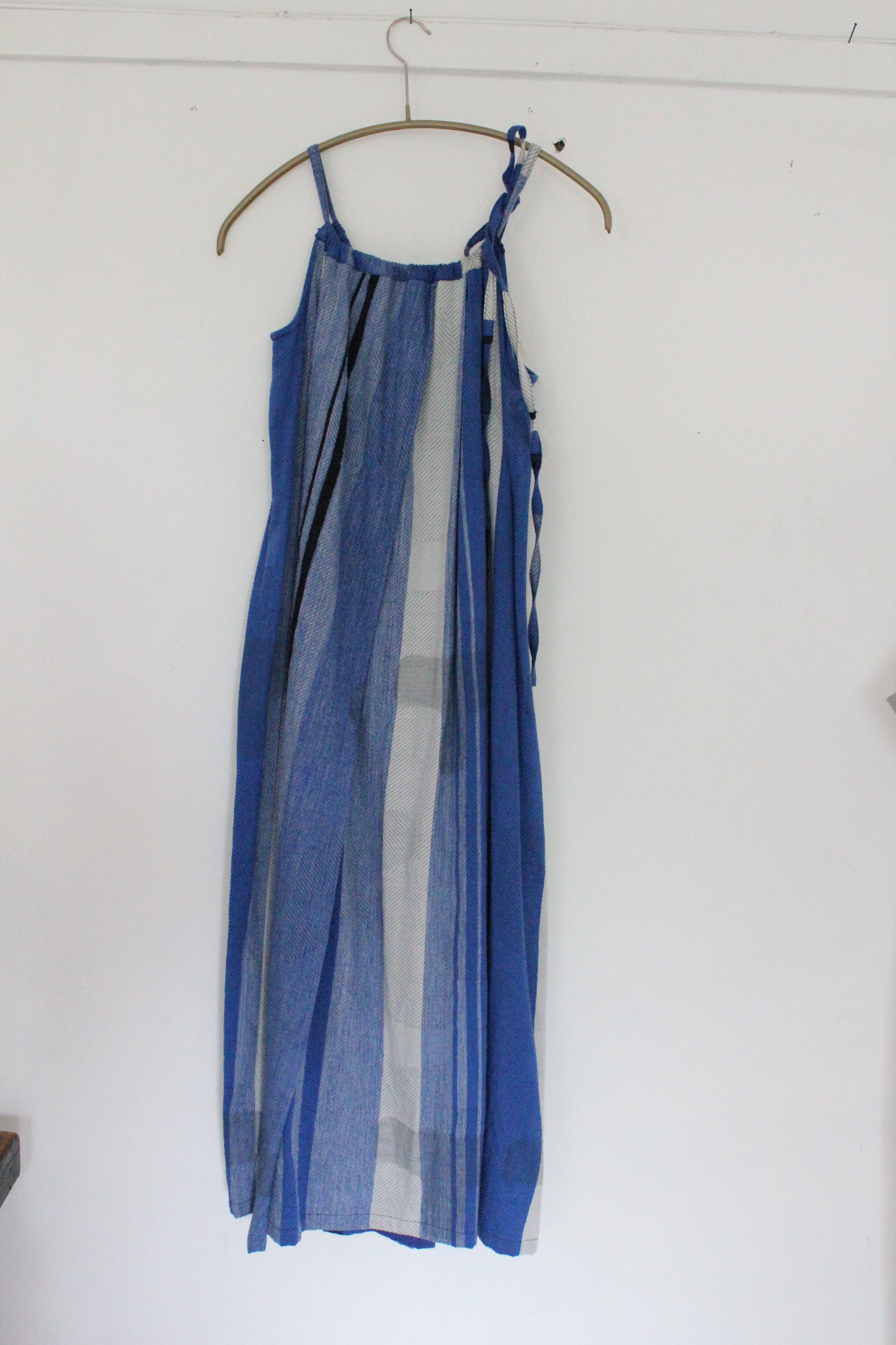 ヴィンテージの織り機でひとつひとつ丁寧に産み出される玉木新雌のウェア。天上の着心地とその風合いは蒸し蒸し熱々なこれからの季節にぴったりで、これぞまさしくひとつとして同じものはないのです。コットン100%、フリーサイズ。こちらは片方の紐で長さを調節出来る限定のワンピース。