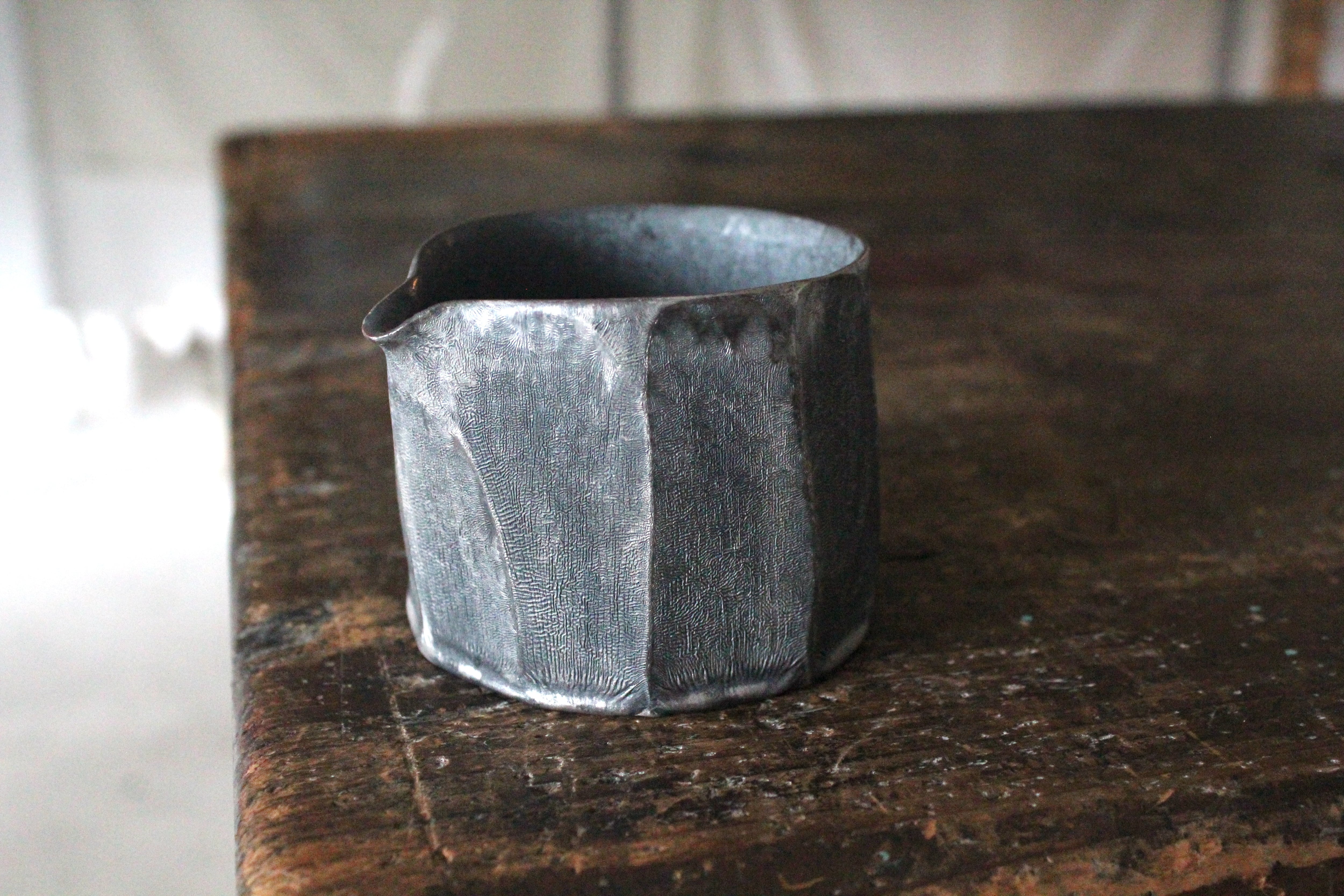 熊本は天草の陶芸家金澤宏紀氏による片口。天草陶石を用いたソリッドなフォルム、鉄分の釉薬によるザラついたテクスチャーとシルバーの妙。最高です。