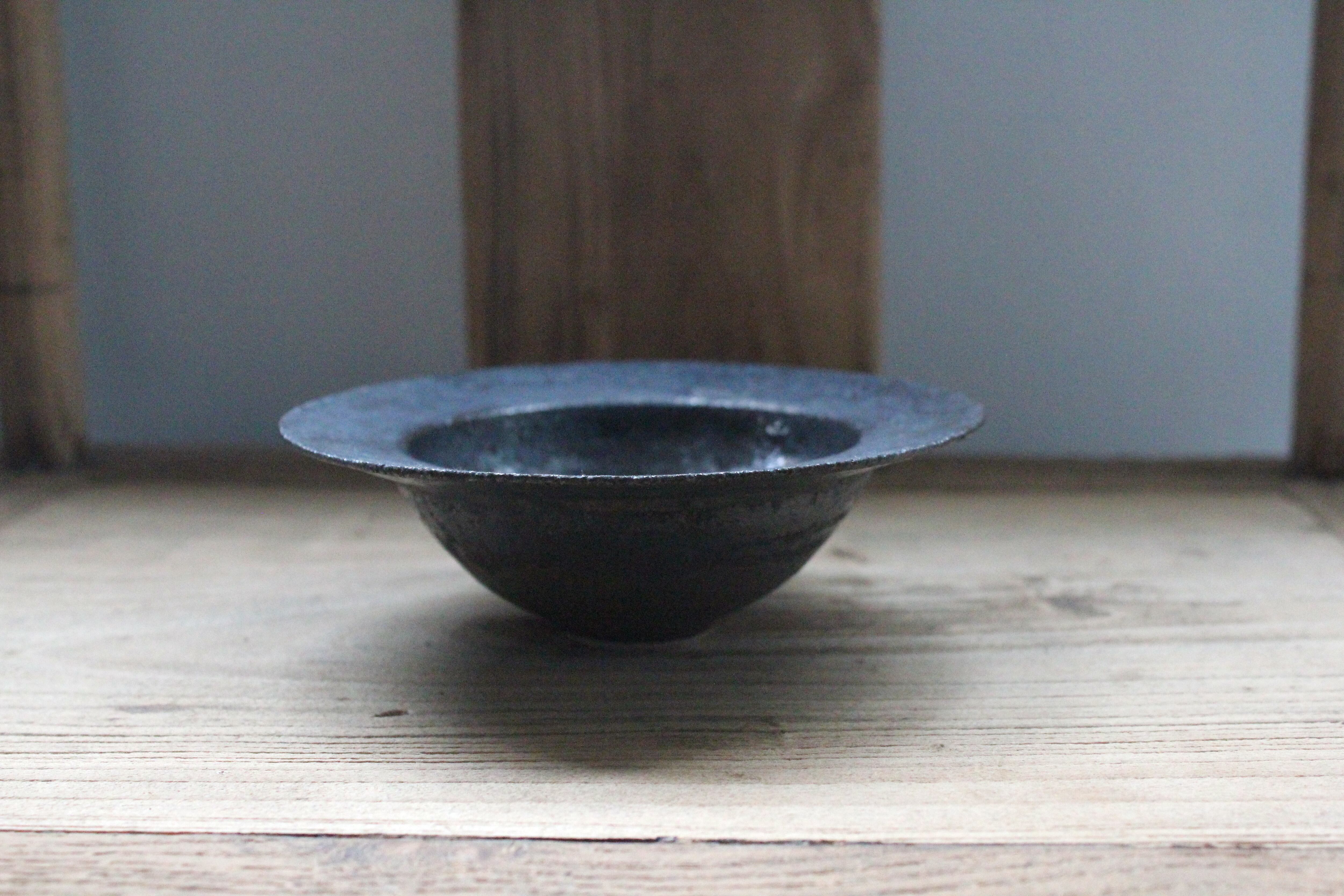 こちらは花田勇樹作のリム小鉢。使えば使うほど、青みがかった深い色合いになっていく、育てがいのある器です。ほうれん草のお浸しを盛りたし。