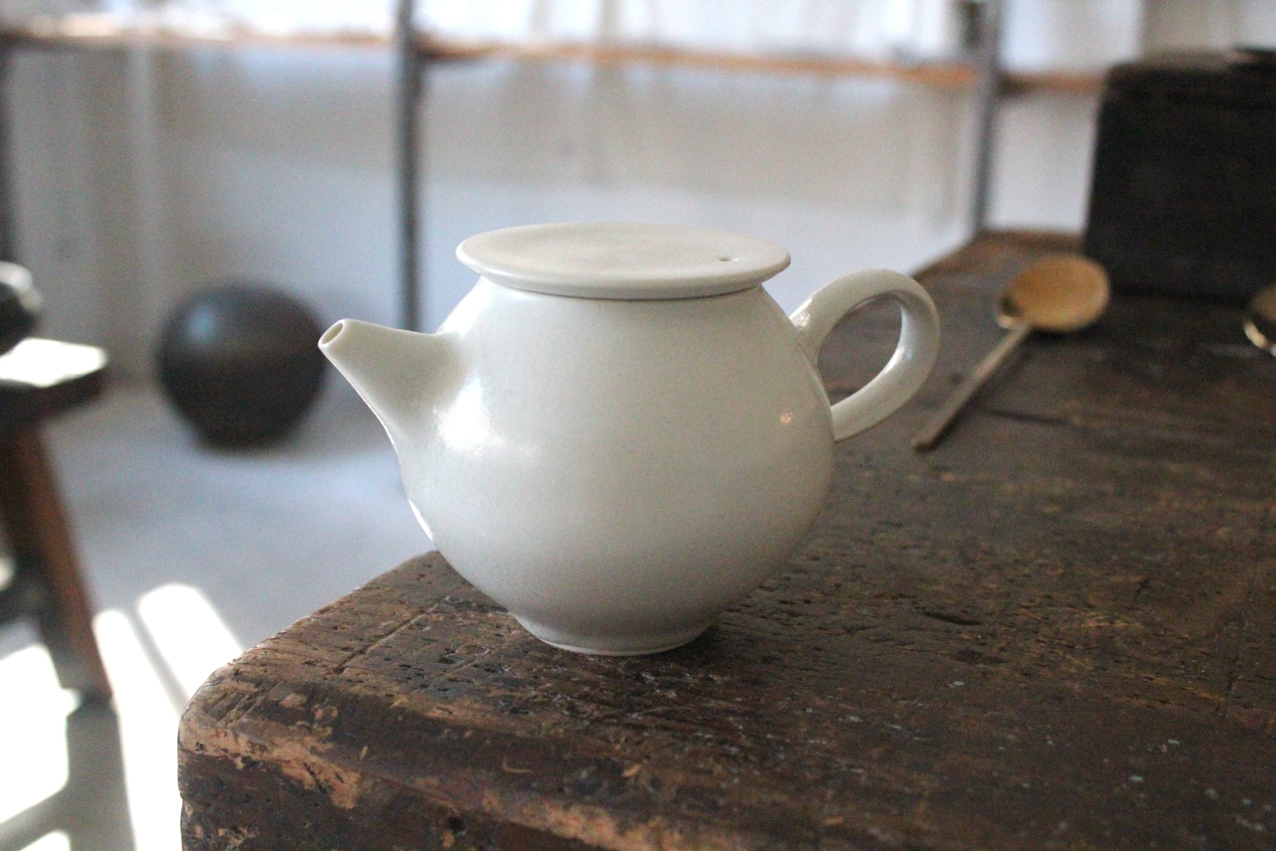 熊本は天草の陶芸家金澤宏紀氏によるポット。まるで生まれたての小動物のような小ぶりのポット。そのカーヴはあくまで柔らかく美しく、繊細に創れられたくちばしは茶切れ鋭く。使い勝手も最高です。天草陶石による白きボディ。こちらは少し点に輝くような艶があります。写真でお分かりになるでしょうか・・・。