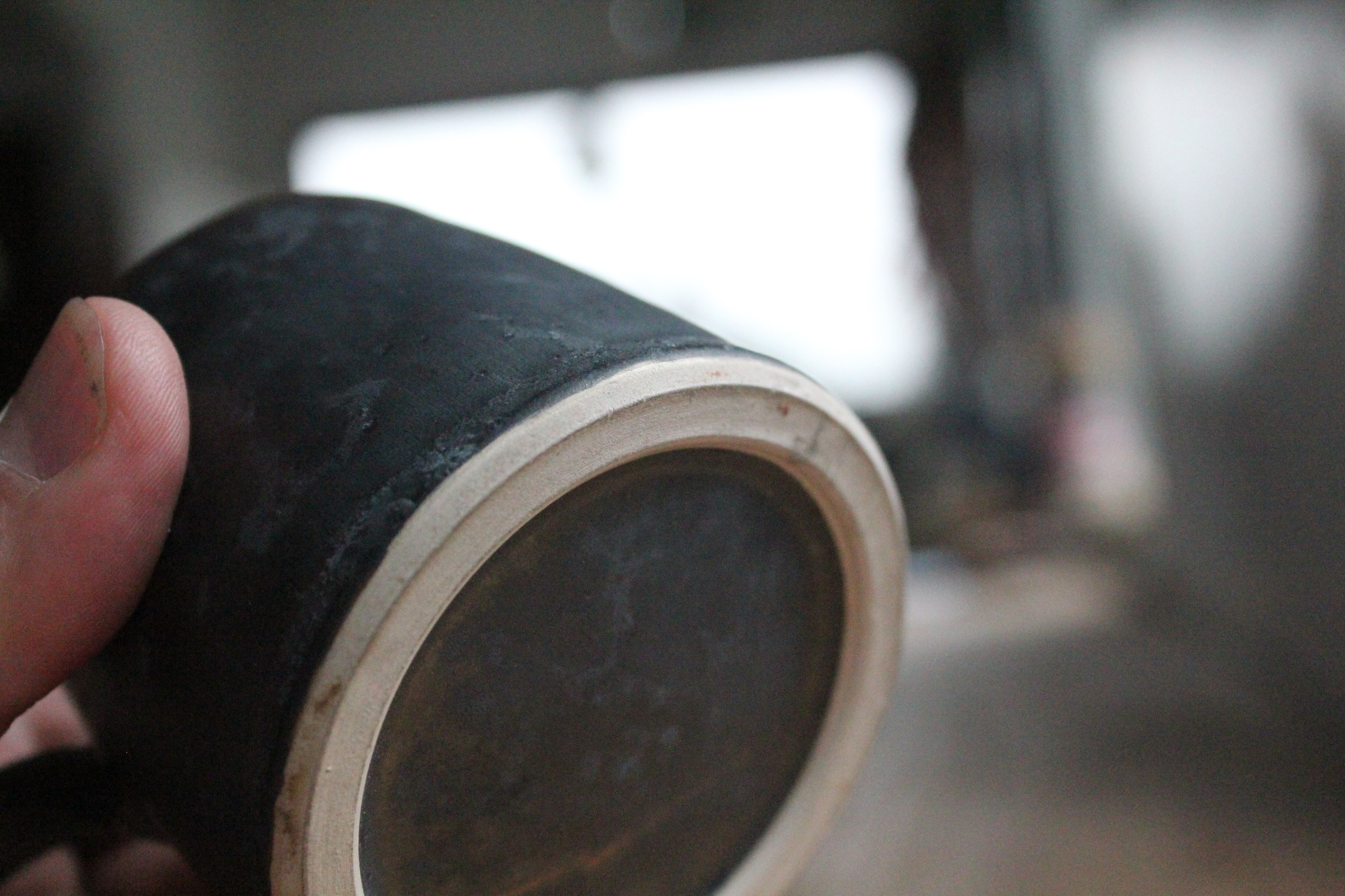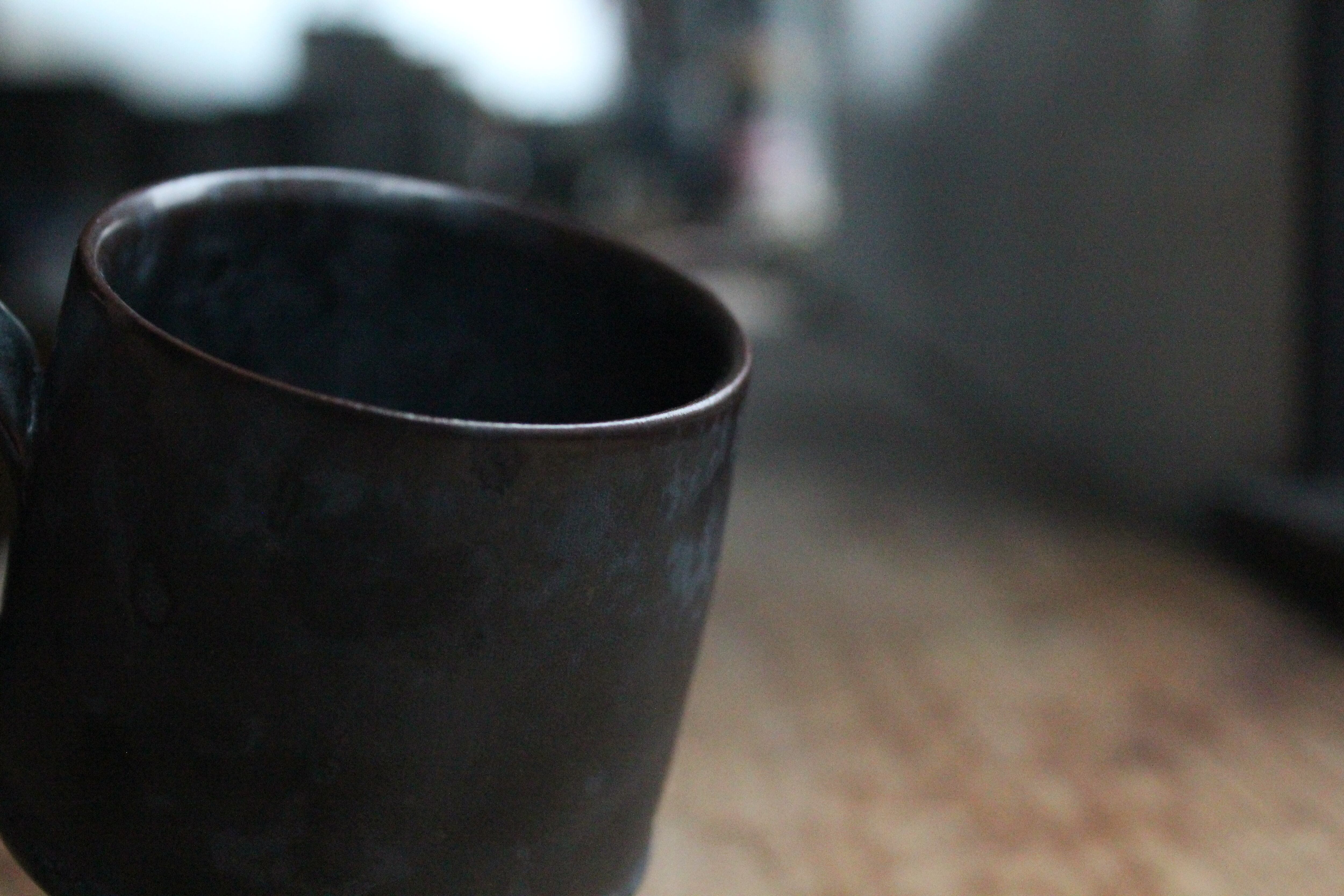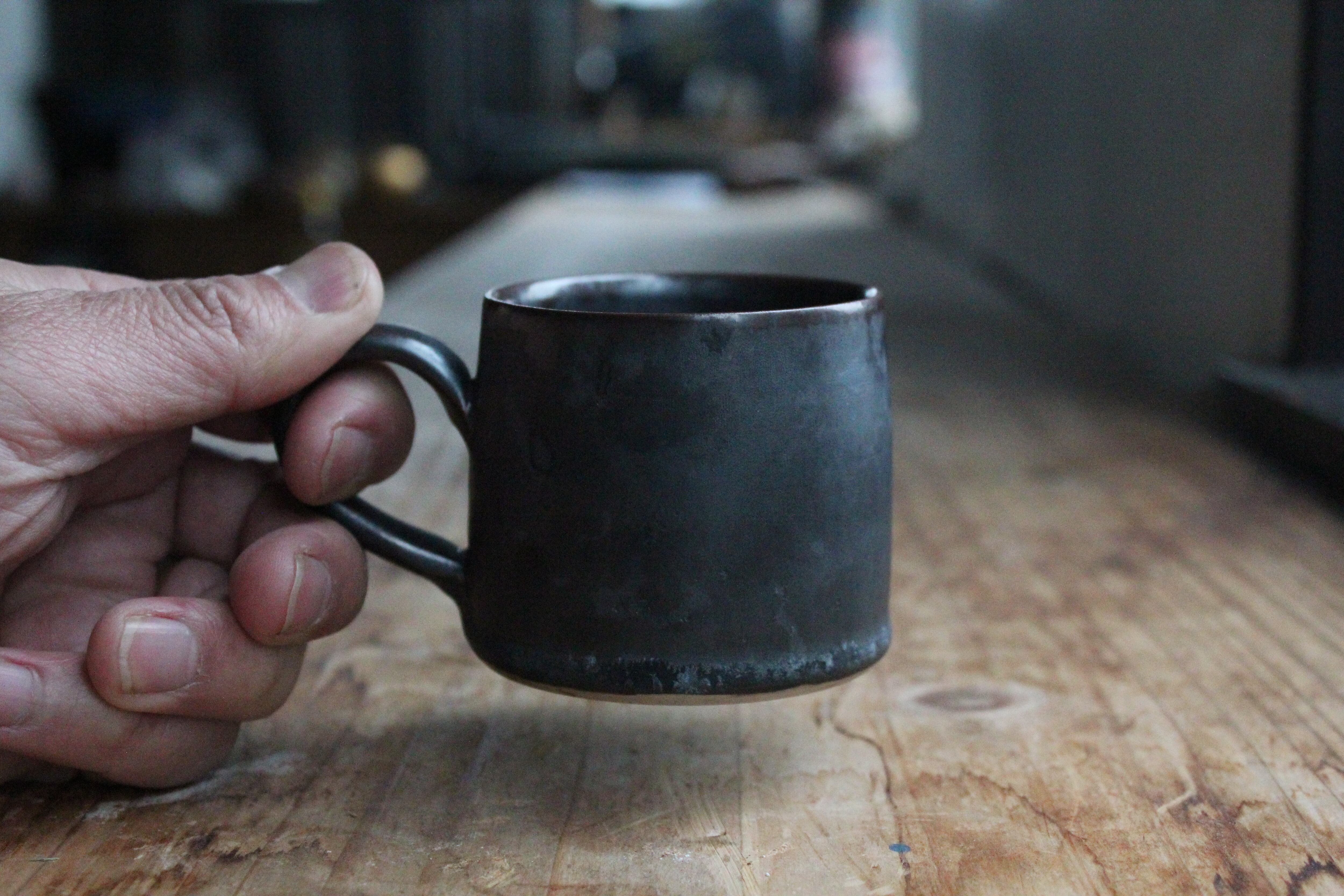 熊本は天草の陶芸家金澤宏紀氏による小さめのカップ。ベースは天草陶石による磁器、そこに鉄分の混じった独特の釉薬をオン。お尻にシルバーを上絵してあります。カーティス・メイフィールドというよりかマーヴィン・ゲイの声を思わせるかのような、写真ではたぶん伝わることのない表面のこのシルキー感。鉄を含んだ故の適度などっしりの持ち感。とにかくおすすめです。6.5×10×高さ6